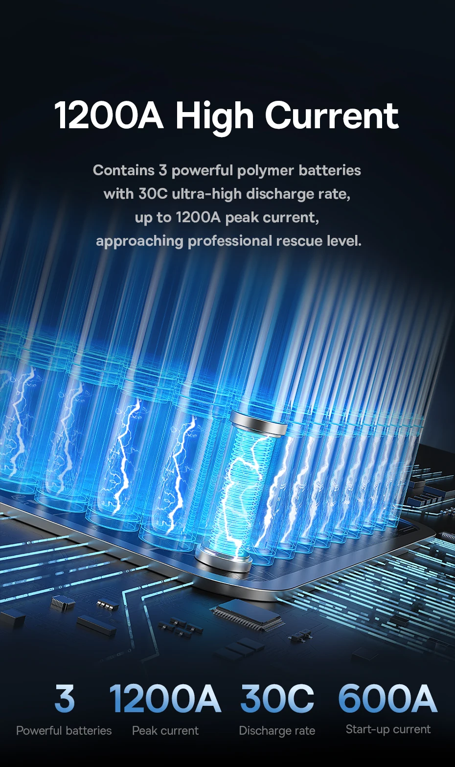 Contains 3 powerful polymer batteries with 30C ultra-high discharge rate, up to 1200A peak current, approaching professional rescue level.