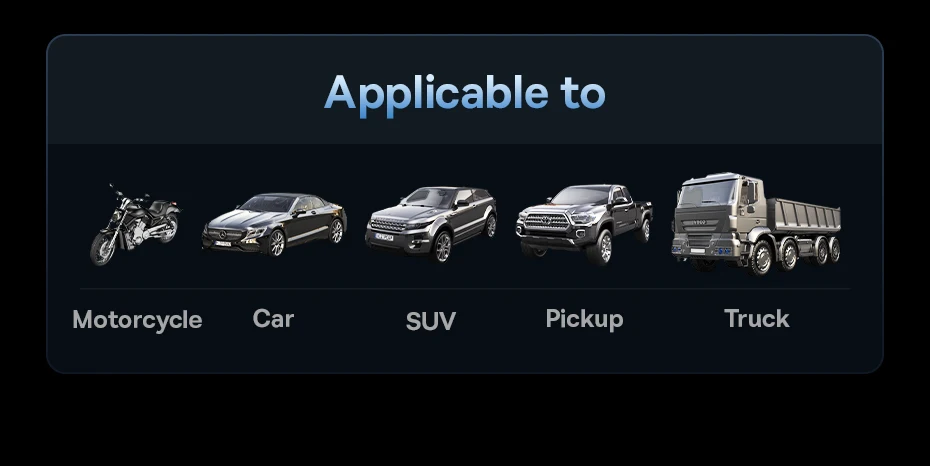 Suitable for gasoline cars with 12V/6.0L displacement and diesel cars with 12V/2.5L displacement.