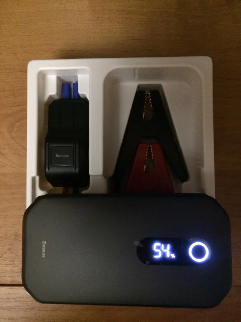Доставка ОЧЕНЬ долгая, больше месяца в СПб, но принёс курьер СДЭК. Штука действительно крутая, сделана качественно, как обычно у baseus, сверху метал, снизу крепкий пластик, крокодилы также из крепкого пластика на тугой пружине, медные зубья, толстый лужёный провод подведён к обеим обкладкам крокодила. Довелось испытать в боевых условиях, калина 8кл, стояла 3 дня на морозе -17, аккум разрядился до 10В и отказался крутить мотор. Подключил бустер, машина сразу ожила, бензонасос и стартер ещё никогда так быстро не работали на этой машине За 3 попытки завести мотор, бустер потерял 17% заряда. Есть защита, когда подключаешь крокодилы, загорается зелёный светодиод (готово, можно заводить), когда перестаёшь крутить стартером загорается красный светодиод и начинает прерывисто пищать (вероятно, бустер предполагает, что машина должна была завестись и размыкает цепь между крокодилами и бустером). В общем, брал по каким-то купонам за 2500р, за эту цену одна из лучших вещей, что я покупалAlexey F. 7 декабря 2021