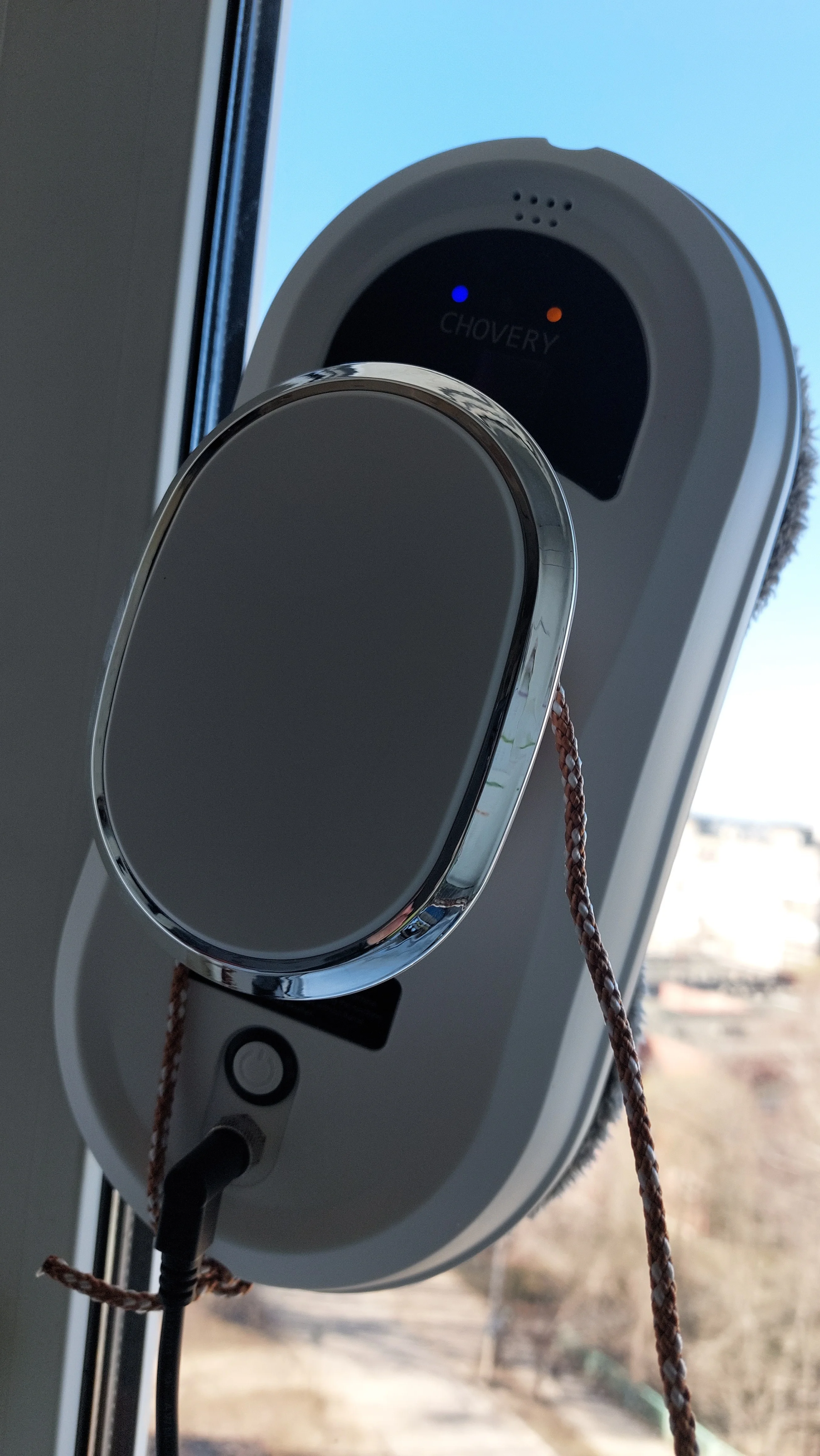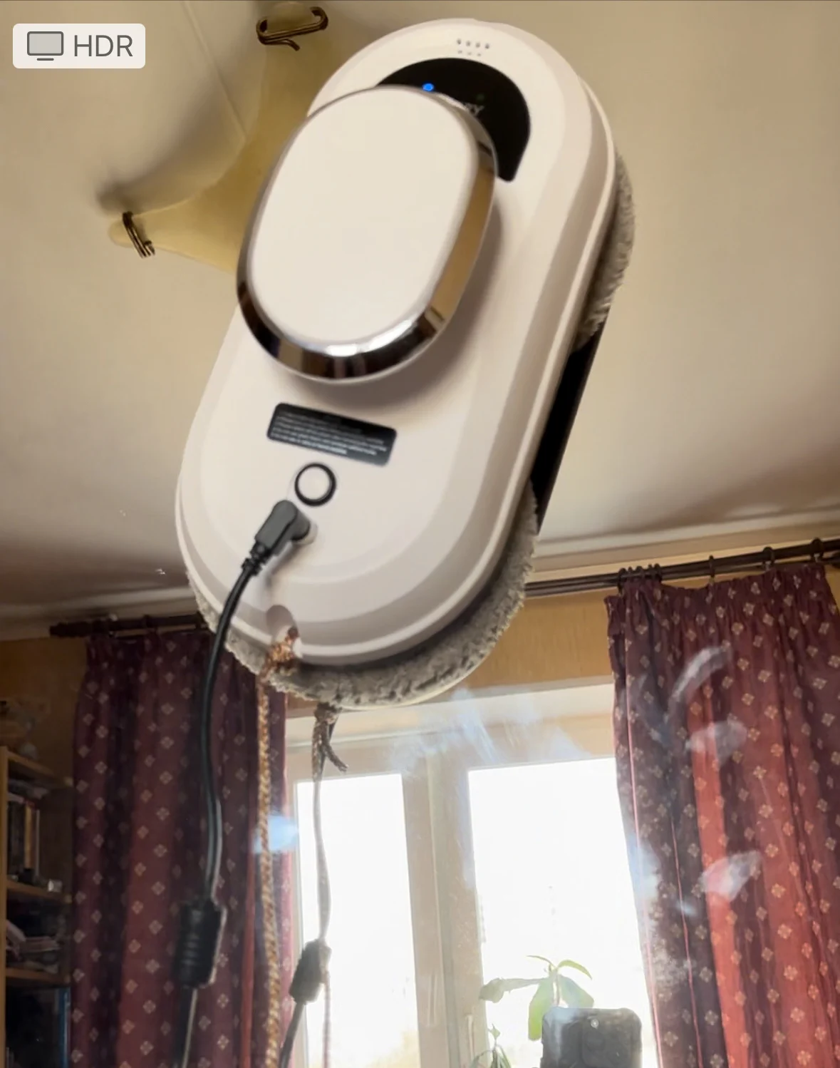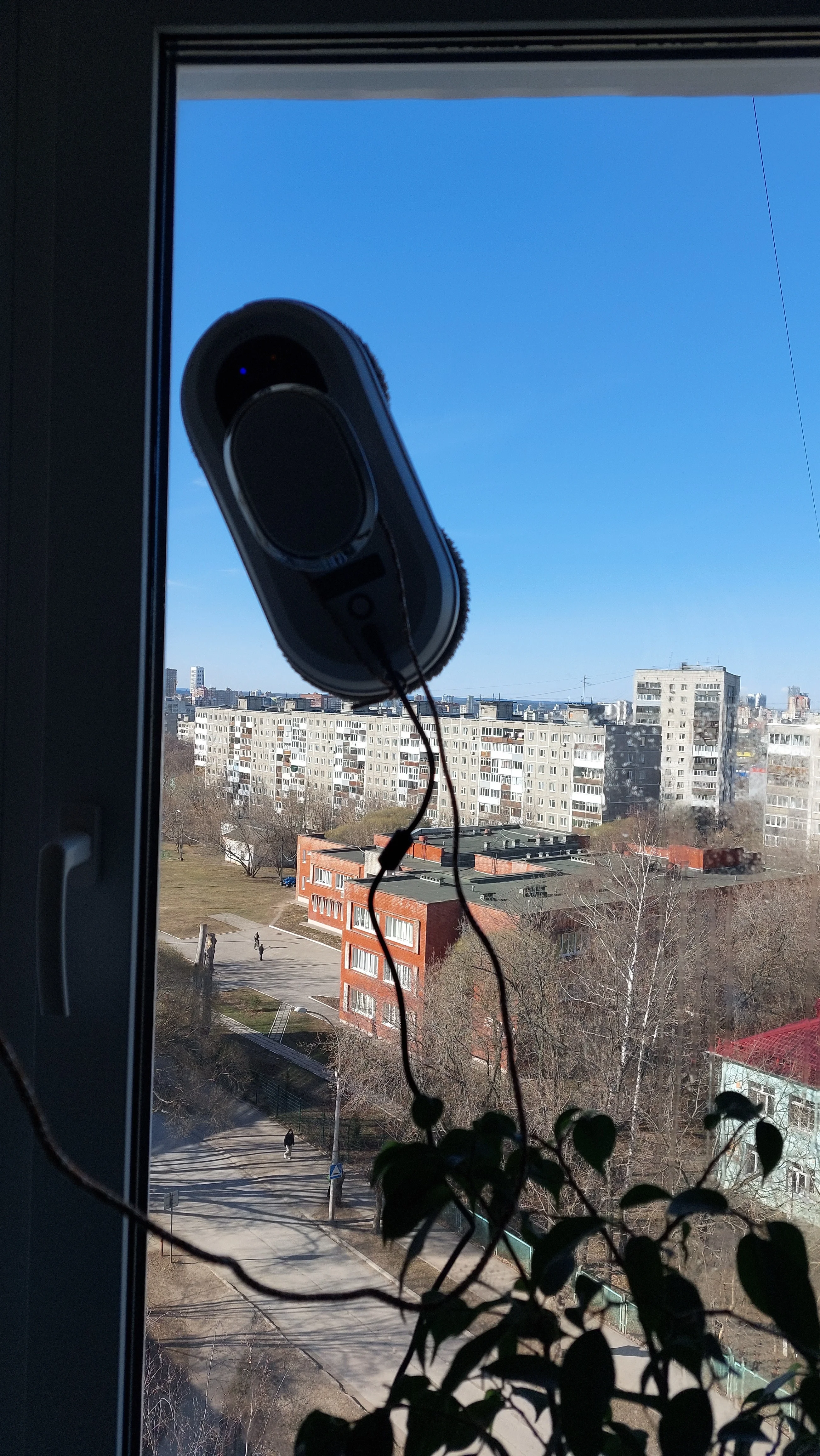 первый проход - действительно нужно делать сухими микрофибрами, затем их снять, постирать, подсушить и надеть обратно. На нижнюю сделать 2-5 пшиков моющей жидкости, верхнюю можно не пшикать и сделать чистовой проход. Можно нажать кнопку и уйти заниматься своими делами - окно закончит и будет стоять на месте, можно пультом вручную вести, куда надо. На одном из деревянных окон при изучении, где у окна - верх, падал пару раз, а в остальных случаях - держится нормально. Хороший товар.