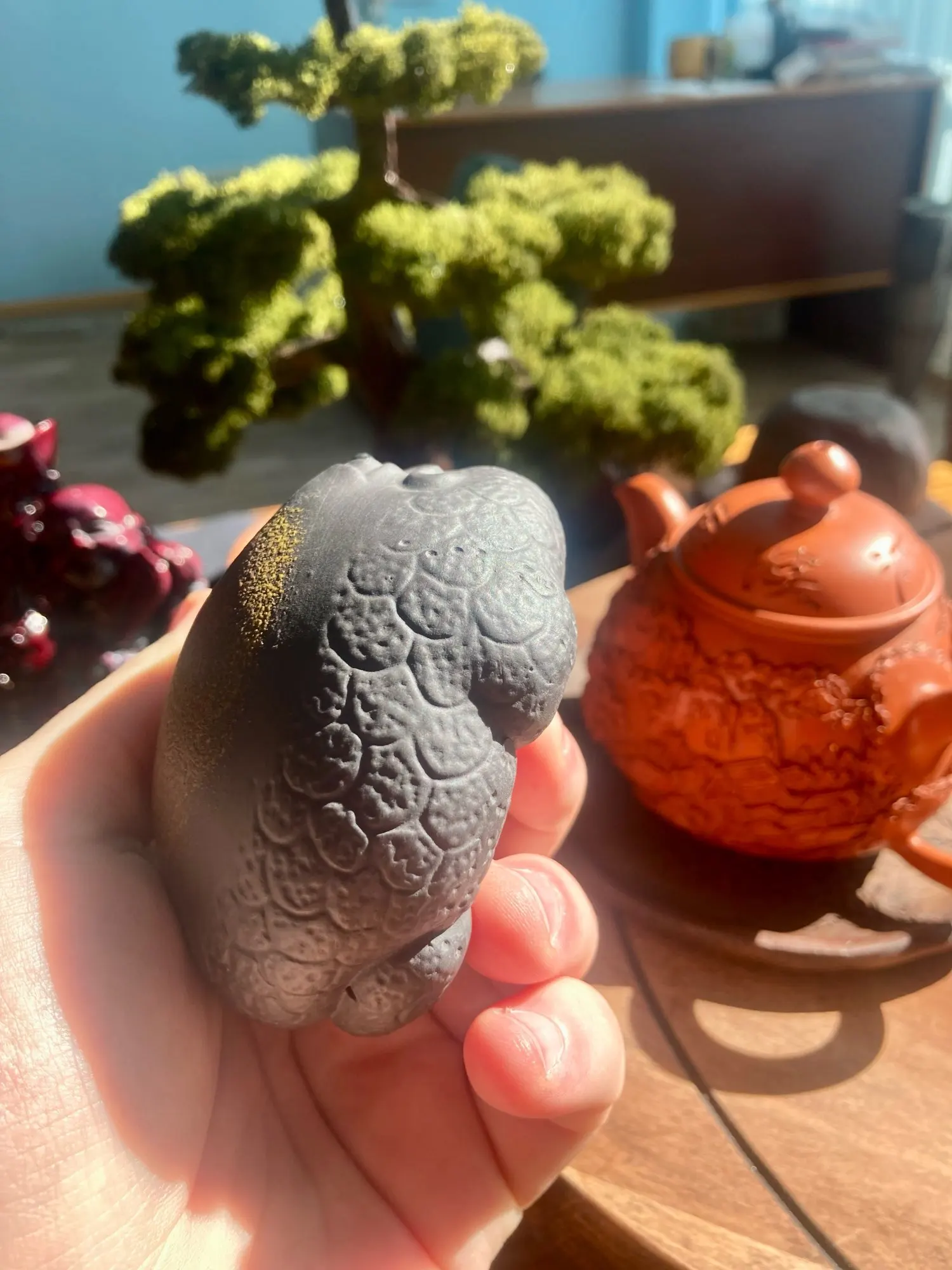 Оригінальна і приємна в руках. Красива статуетка при чайному спілкуванні ... Дуже задоволена. Безпечна і надійна упаковка, дякую продавцеві. До Києва посилка добиралася рівно місяць ... мабуть по дорозі з Китаю ... кудись заходила попити смачного чая
