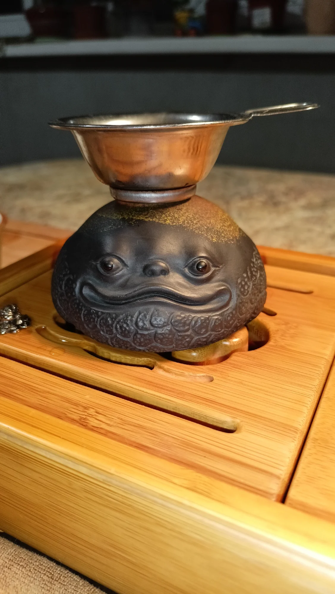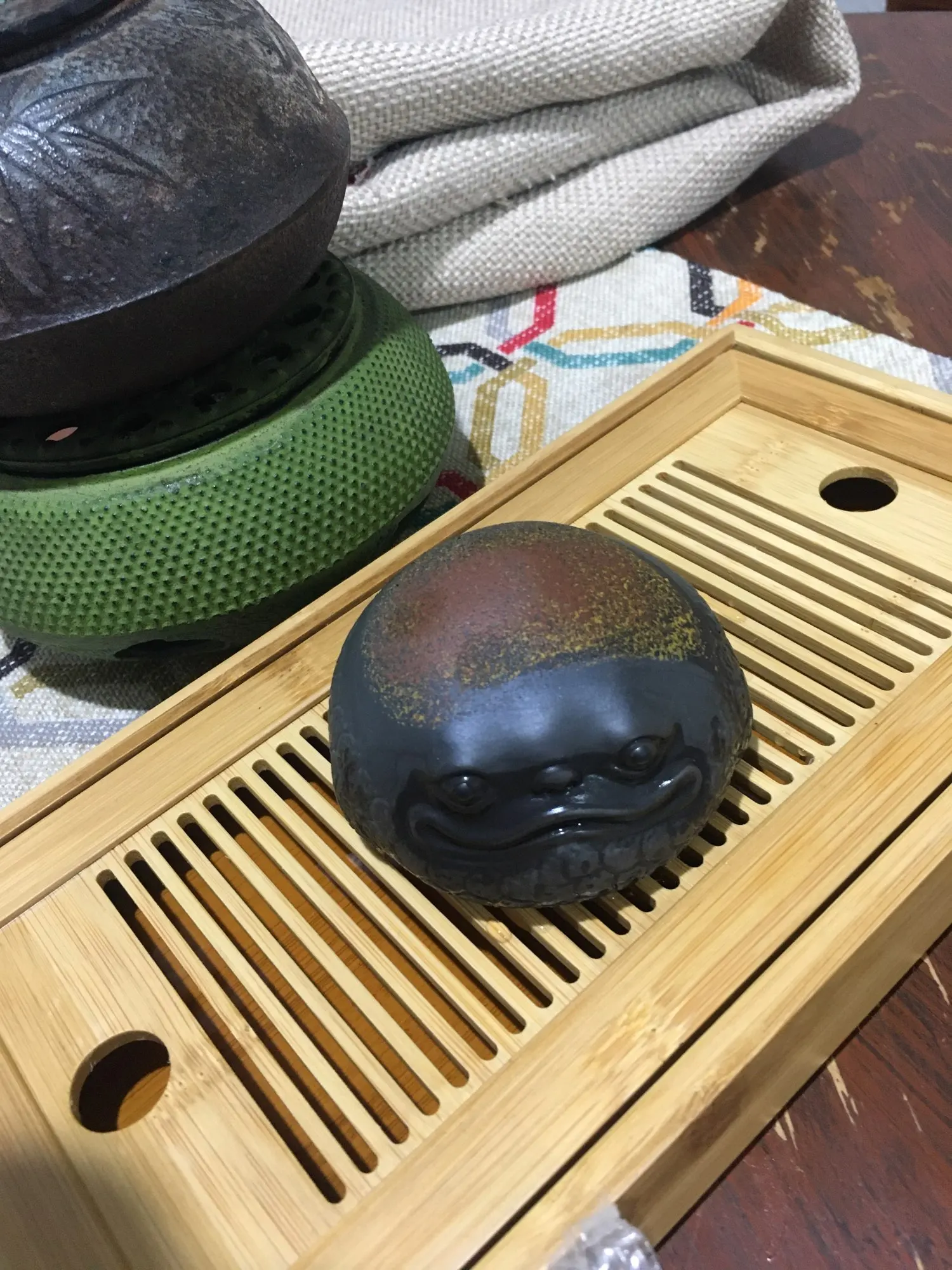 Отличная чайная жаба!!! Однозначно стоит своих денег! Сидит на чабани устойчиво и без неё чай в чахай не льётся)))) Кажется мило она щерится на меня во время чаепития! Очень удобно использовать её как подставку для сита или крышки чайника !1626 u. 1 апреля 2023
