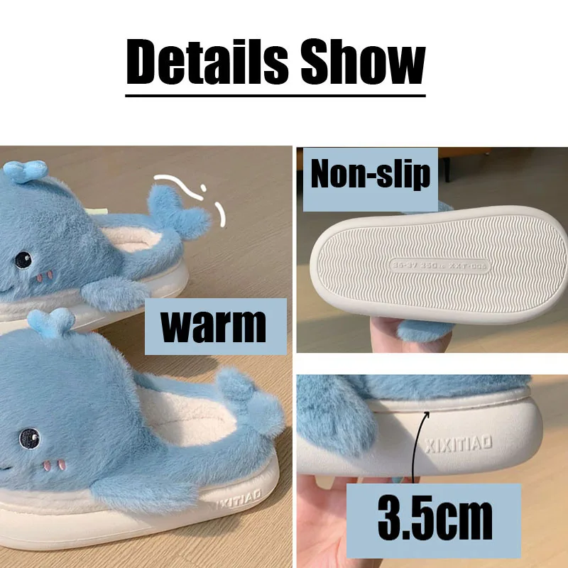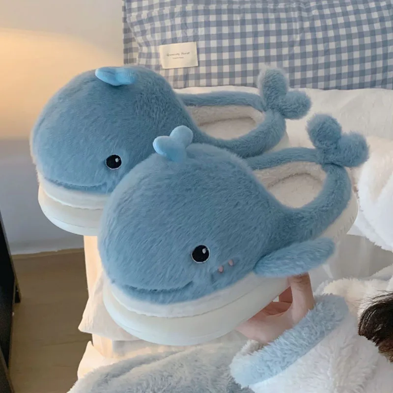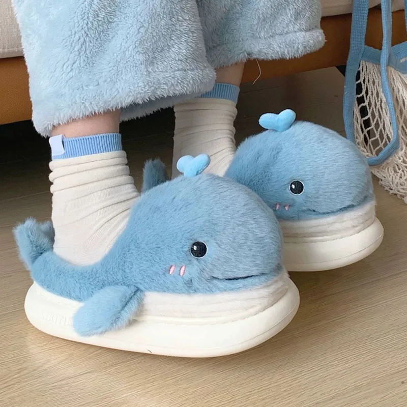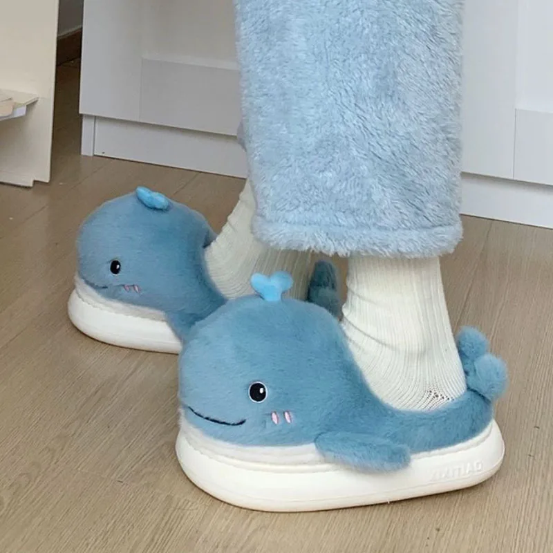 - 2023 симпатичные Тапочки с мультяшным Китом, женские пушистые меховые...