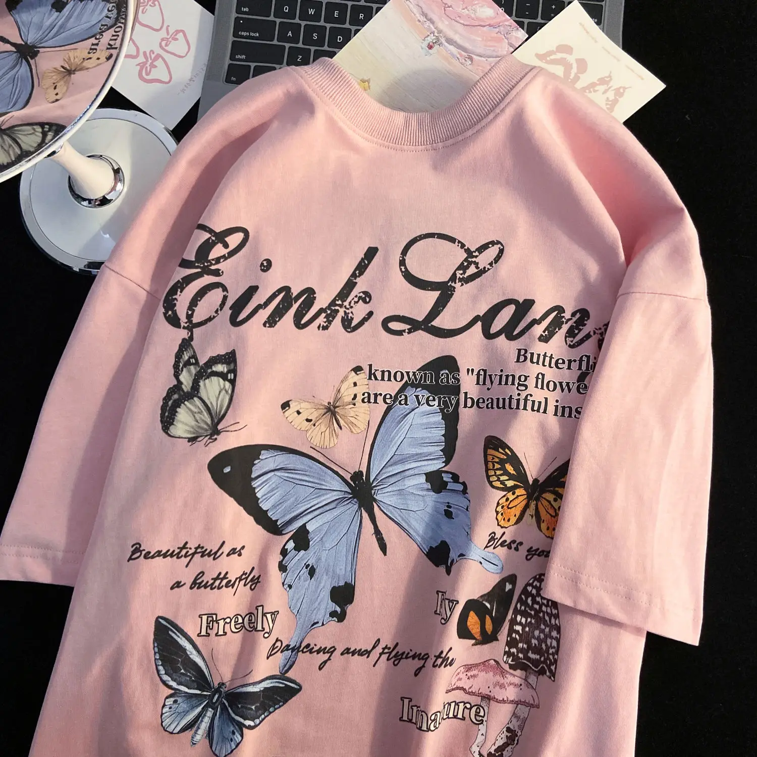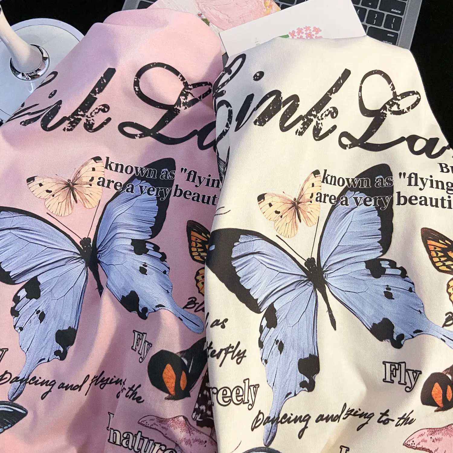 Американская Ретро футболка с принтом бабочки для пар, повседневный свободный облегающий мужской и женский летний трендовый топ с коротким рукавом