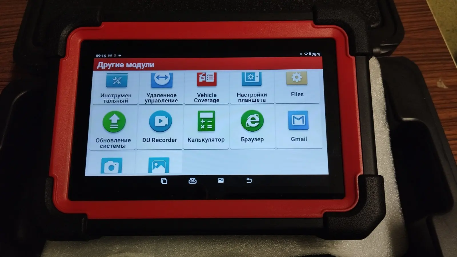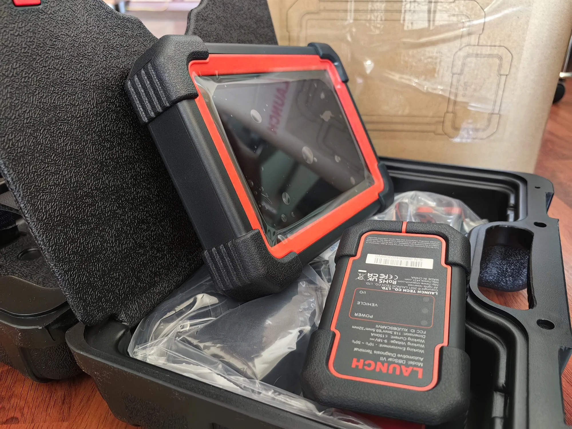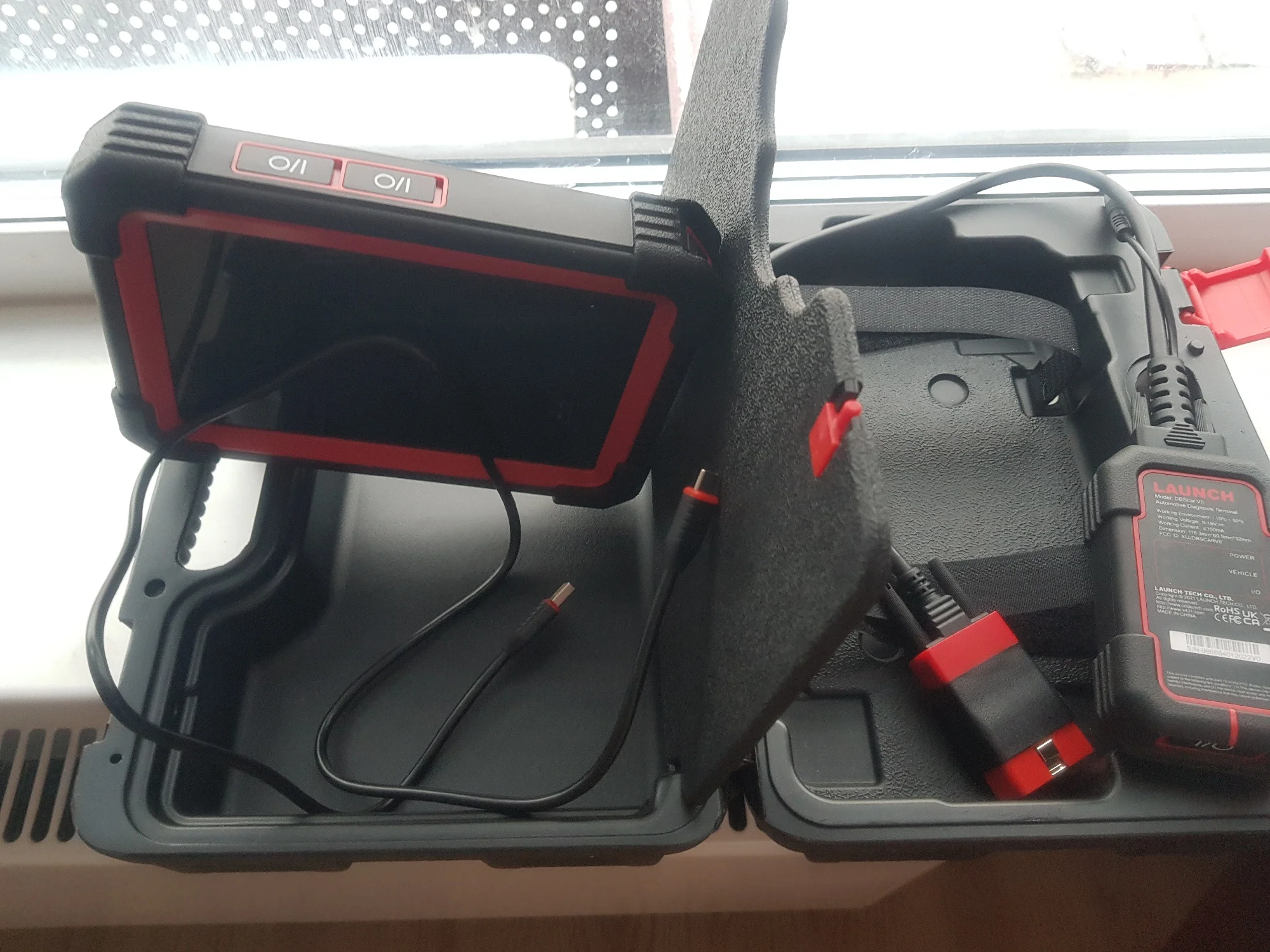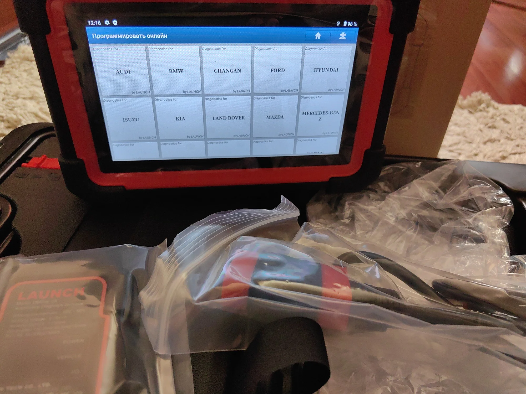 Первое впечатление «вау». Интересный прибор. Не сказать что быстрый, но и не медленный. Планшет тяжелее чем ожидал, это и оправдывает заявленная емкость аккумулятора. При первом включении показал заряд в 98%. Пока перевел язык, пока подключил и обновил и проверил уже 96%. Первый прибор такого рода в личном пользовании. До этого пользовался более дешовыми и «старухой». Заинтересовал племянника на диагностику(нужно ведь толком прибор узнать). Вычитал и вин и пробег и много интересного о машине в виде адаптаций и тестов исполнительных механизмов. Часа 2,5-3 «игрались» и посадили батарею планшета всего до 90%(активного использования). Из приятных моментов - при наличии интернета переводит меню и ошибки, а также можно найти информацию по ошибке в сети интернета. Пластик на ощупь приятный. Продавец в подарок положил тестер тормозной жидкости. Как ни крути, а приятно. Дошло за 11 дней(с момента заказа). Отправлено со склада в России(Подмосковье)