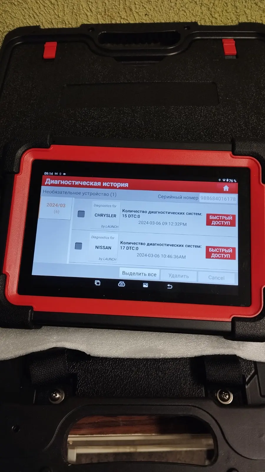 Пришло в Беларусь за 10 дней, что очень быстро! Упаковка слегка примята, но внутри очень прочный чемодан, так что для сканера это не страшно. Сам сканер это отличное сочетание цены и функционала, для DIY и малых СТО, то что нужно. Маркой Launch пользуюсь более 10 лет, отличная техника! На фото пример отчёта который формирует сканер. Очень доволен покупкой! Продавцу большое спасибо!Aliaksandr L. 8 марта 2024