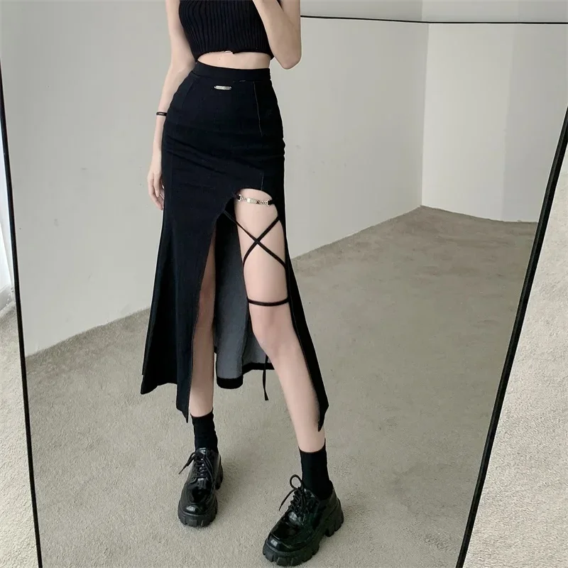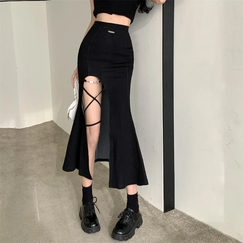 Новая Черная Соблазнительная таинственная королевская сестра подходящая ко всему дизайнерская трендовая крутая Женская Расклешенная юбка с разрезом для девушек