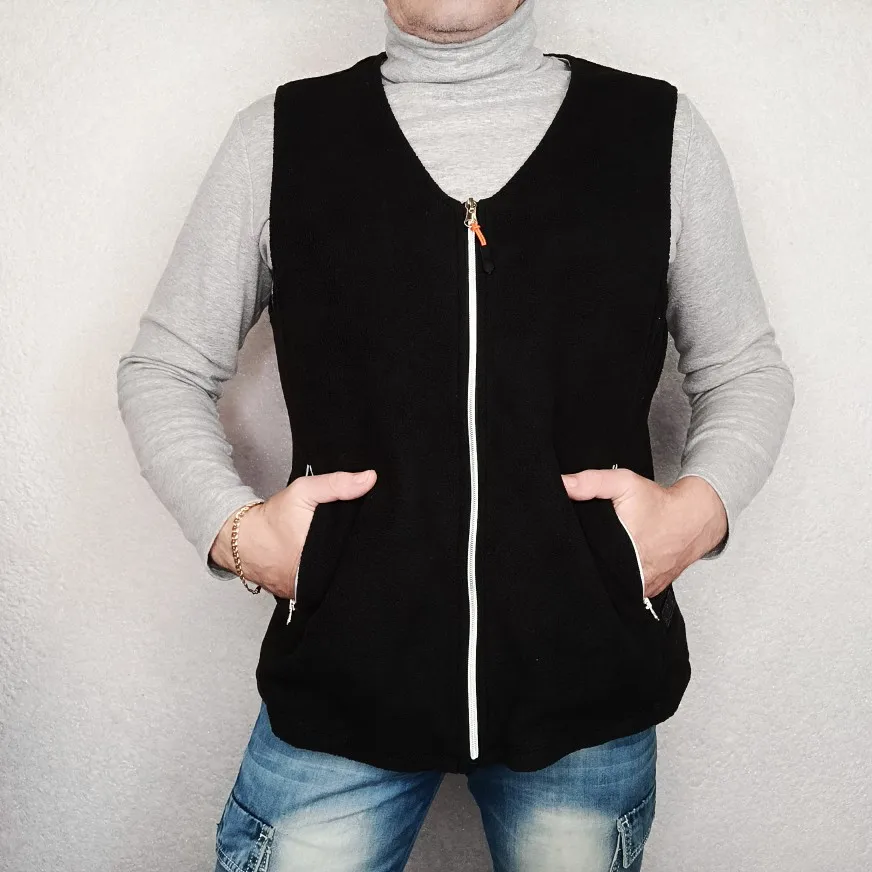 Жилет с подогревом от NR Heating Clothes.Одежда с подогревом сегодня широко применяется для работы в экстремальных условиях, а также горнолыжниками, путешественниками, охотниками, рыбаками, туристами.Лёгкий флисовый жилет с инфракрасным обогревом, удобно носить под любой верхней одеждой. Благодаря греющему комплекту в составе жилета-создается комфорт в любую погоду и время года.По ссылке разные варианты. Размер 2XL, на: рост 170см, ОГ 104см, ОТ 86см, ОБ 98см. Сел отлично. Спереди молния, два карамана на молниях. Три варианта температурного обогрева(45,55.65С).Аккумулятор в комплект не входит. Рекомендую
