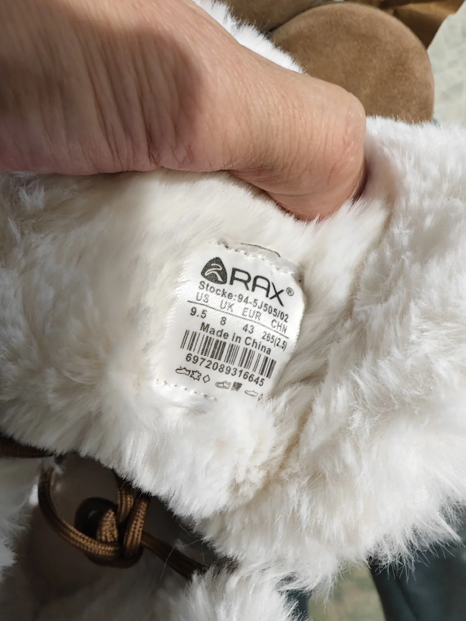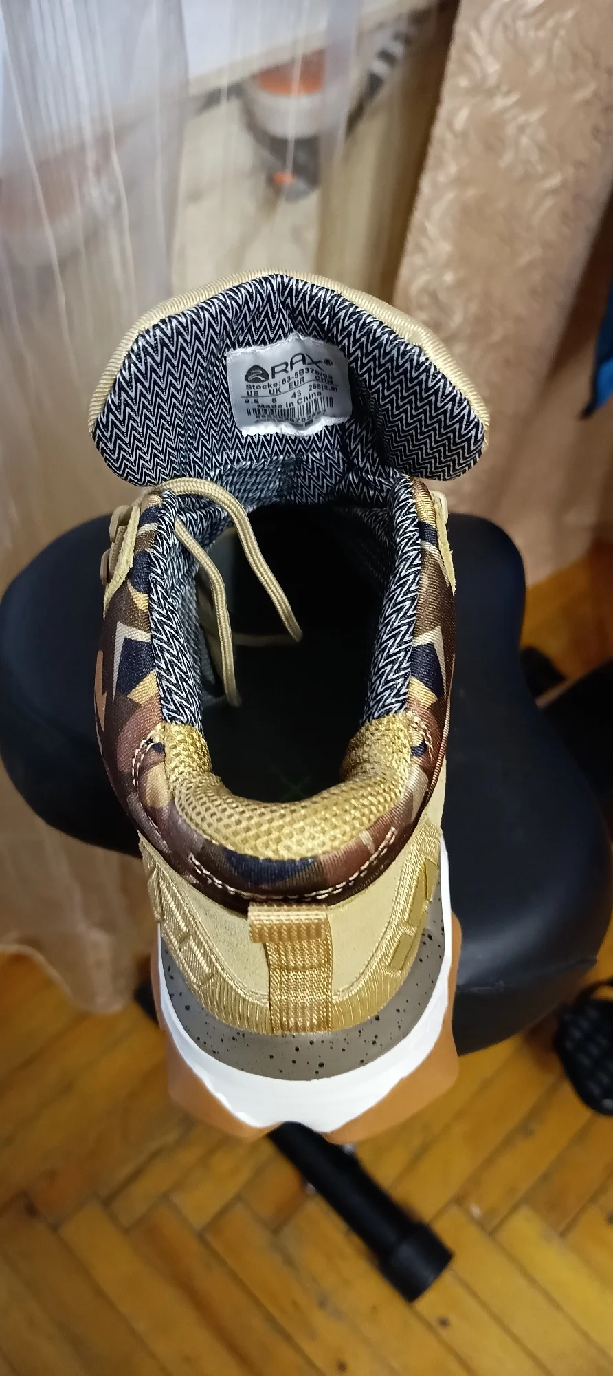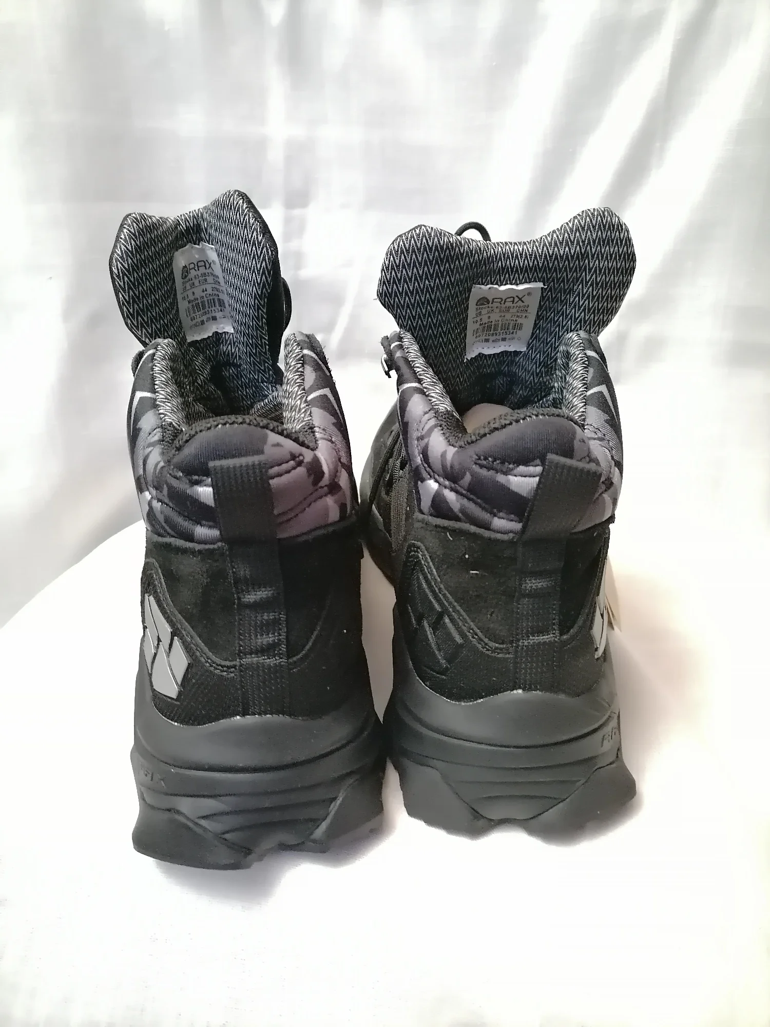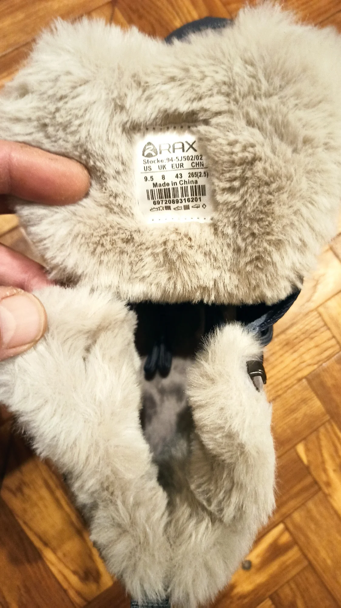 Признаться честно, я первый раз покупаю для себя RAX но много наслышан об этом бренде. И у друга есть летние кросовки RAX он очень доволен. Вот и я захотел стать доволным, и заказал себе обувь на зиму. 18 ноября заказал 25 получил, просто прекрасно. Когда распокавал два фирминых пакета и увидел обувь, сразу же промелькнуло в голове что они классные, и я не ошибся, мех очень мягкий, нежный такой, сами кросовки очень лёгкие, и ноге в них приятно. По квартире походил всё нравится, на улице ходить ещё жарко, думаю тепые будут. Нога у меня 27 см брал 43, и не прогодал, но я ношу зимнию обувь на летний носок, и мне кросовки почти в притык, но не жмут. Для тех кто на шерстяной носок носит, лучше взять на размер болше.