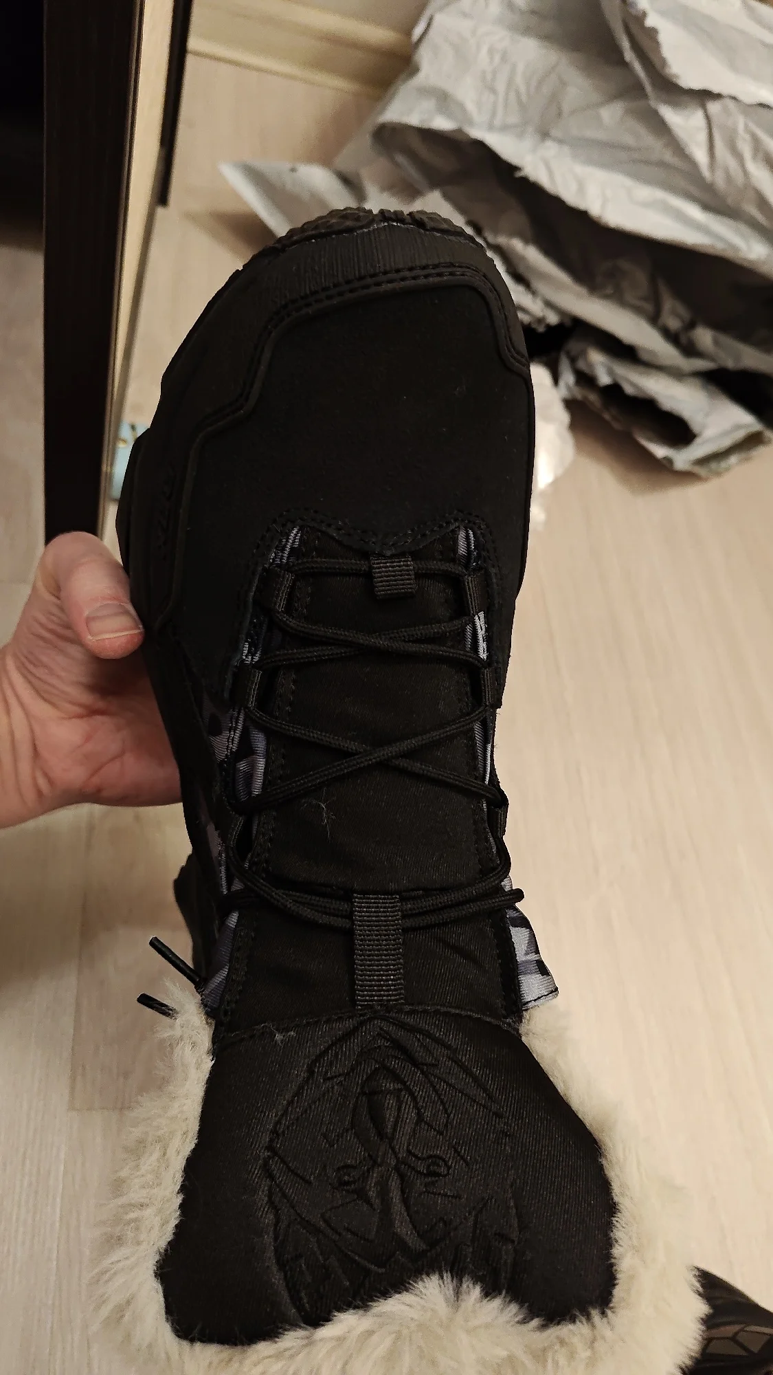 Отличные зимние кросовки, мягкие, возможно тёплые :) , зима пока у нас с +, но одевать и носить очень приятно, язычок литой, вода и снег просто так не попадут. Отлично утягиваетья по ноге.