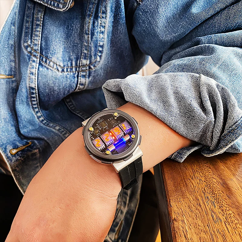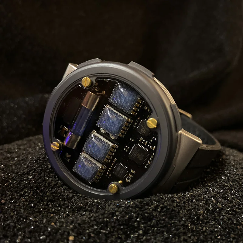 Прикольные наручные стильные часы на газоразрядных индикаторах, сделаны по мотивам игры «Метро 2033»