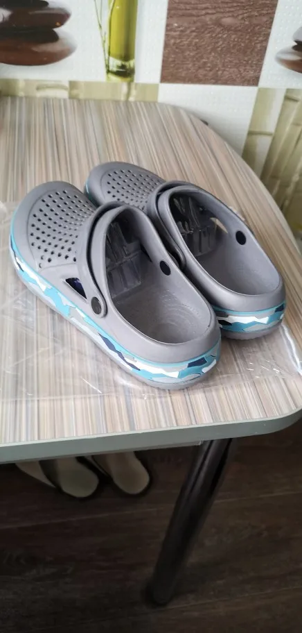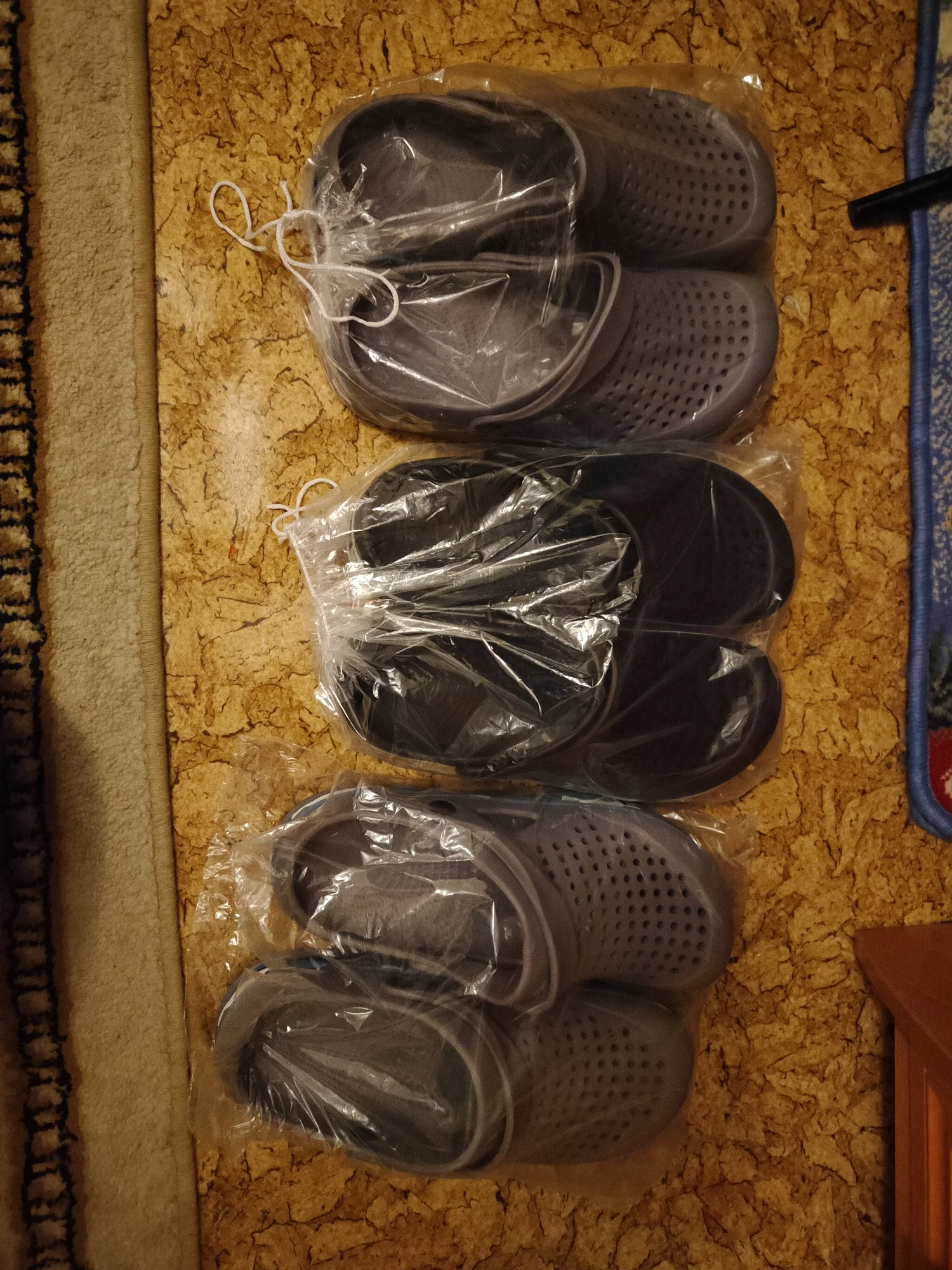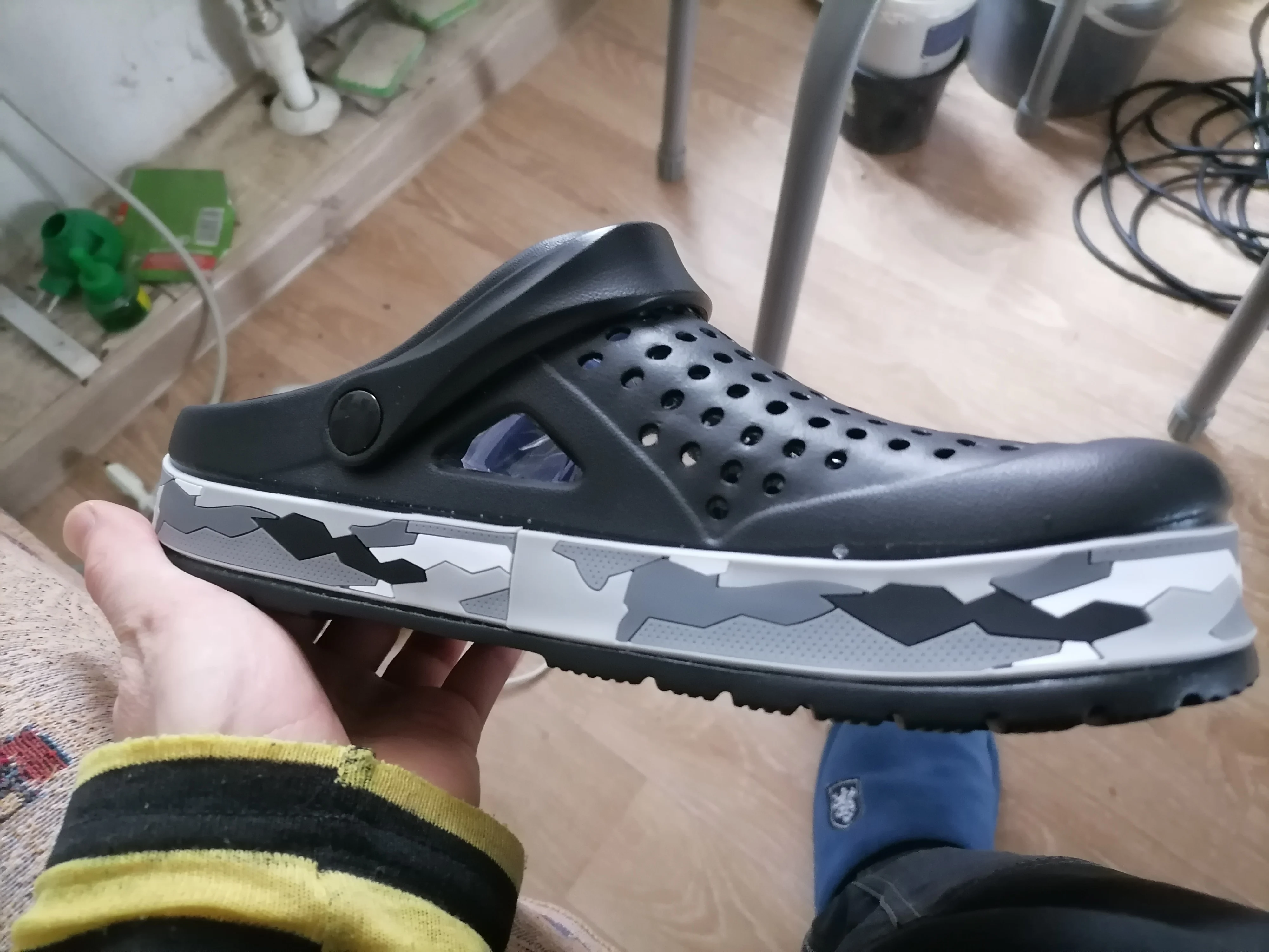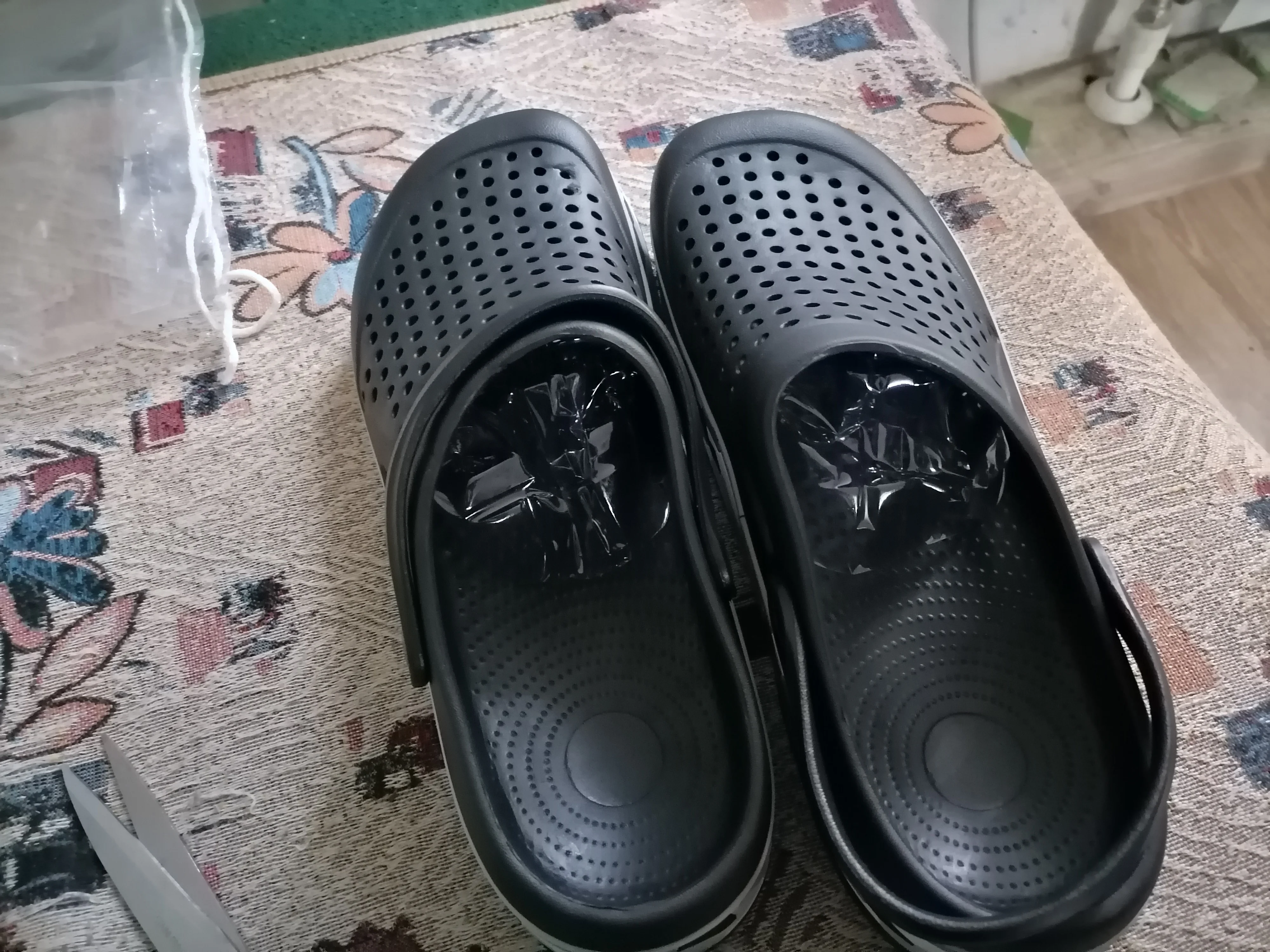 Кайфовые тапки, мягкие удобные, брал для работы( работаю веломехаником) по 12 часов на ногах, от мягкости кайфанул супер, рекомендую однозначно!! Поварам , сервисникам, офисникам. Размер определял по размеру ступни, на листик А4 ногу ставишь обводишь меряешь, получилось 27,5 см = 10 = взял 44, палец чутка упирается, но мне так и надо, больше по размеру будут болтаться плюс они из такого материала чуть утопчатся. До Новороссийска за 10 дней долетели. Наклейки отдельно заказывал)) теперь самый модный механик уровня SLX))))Sergei R. 4 февраля 2022