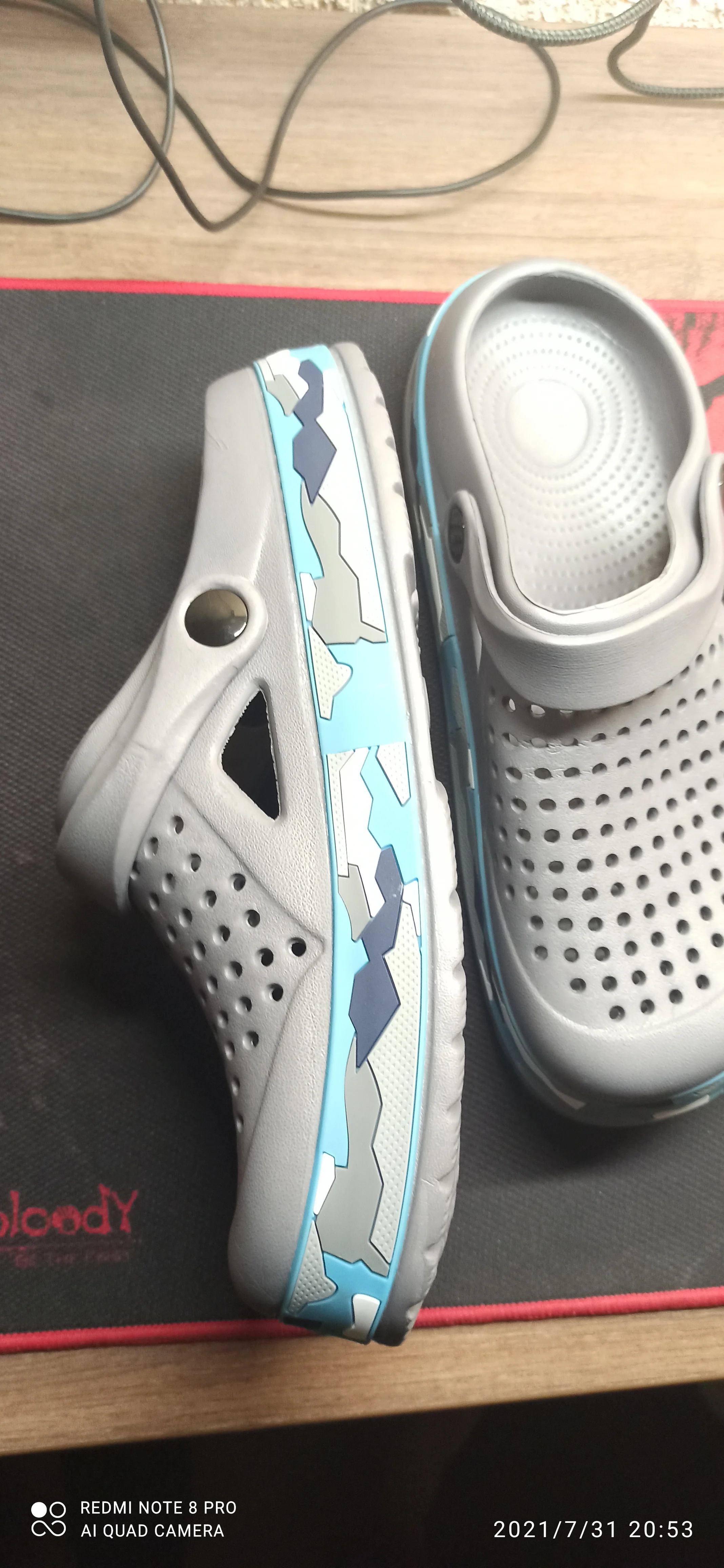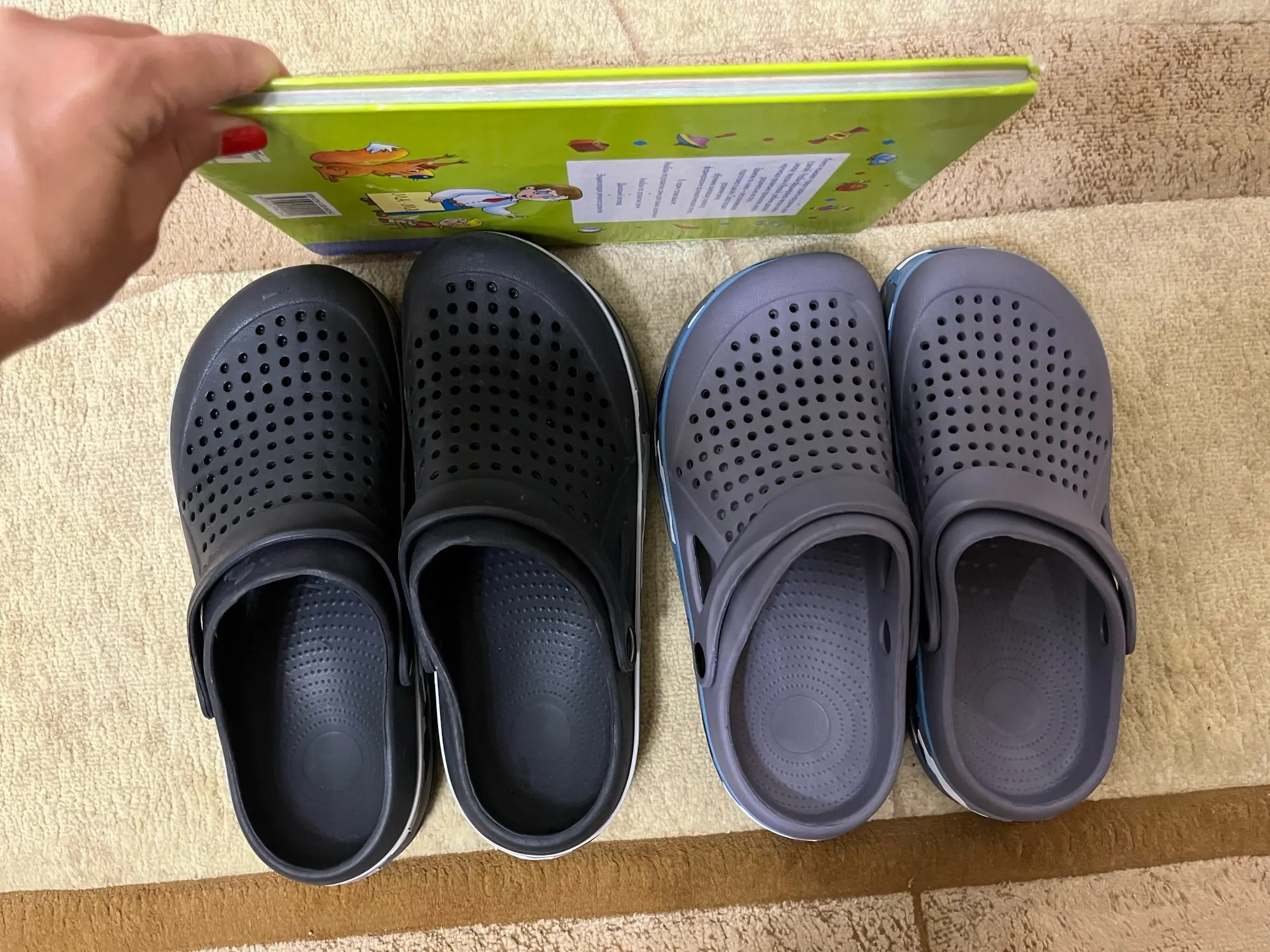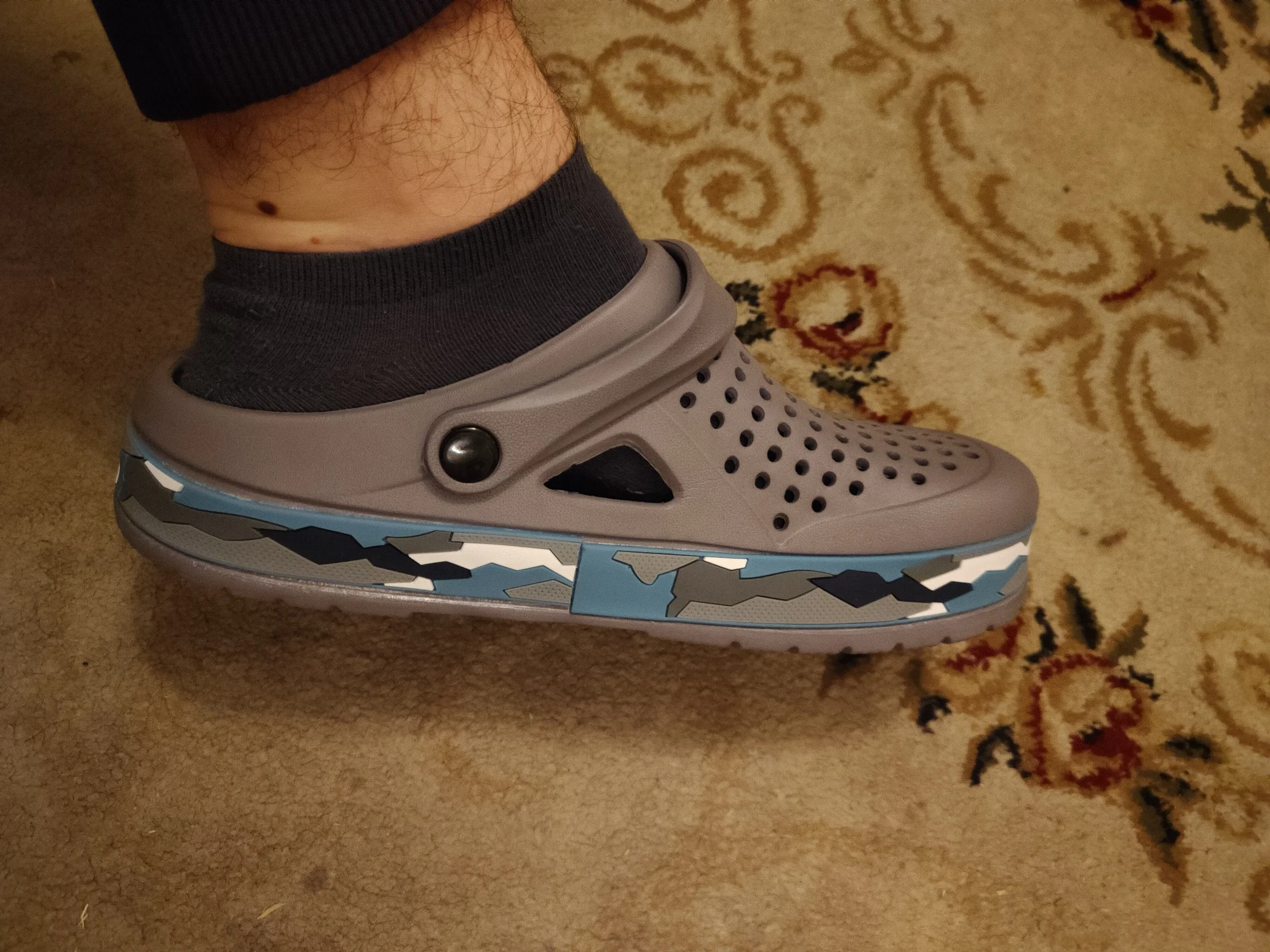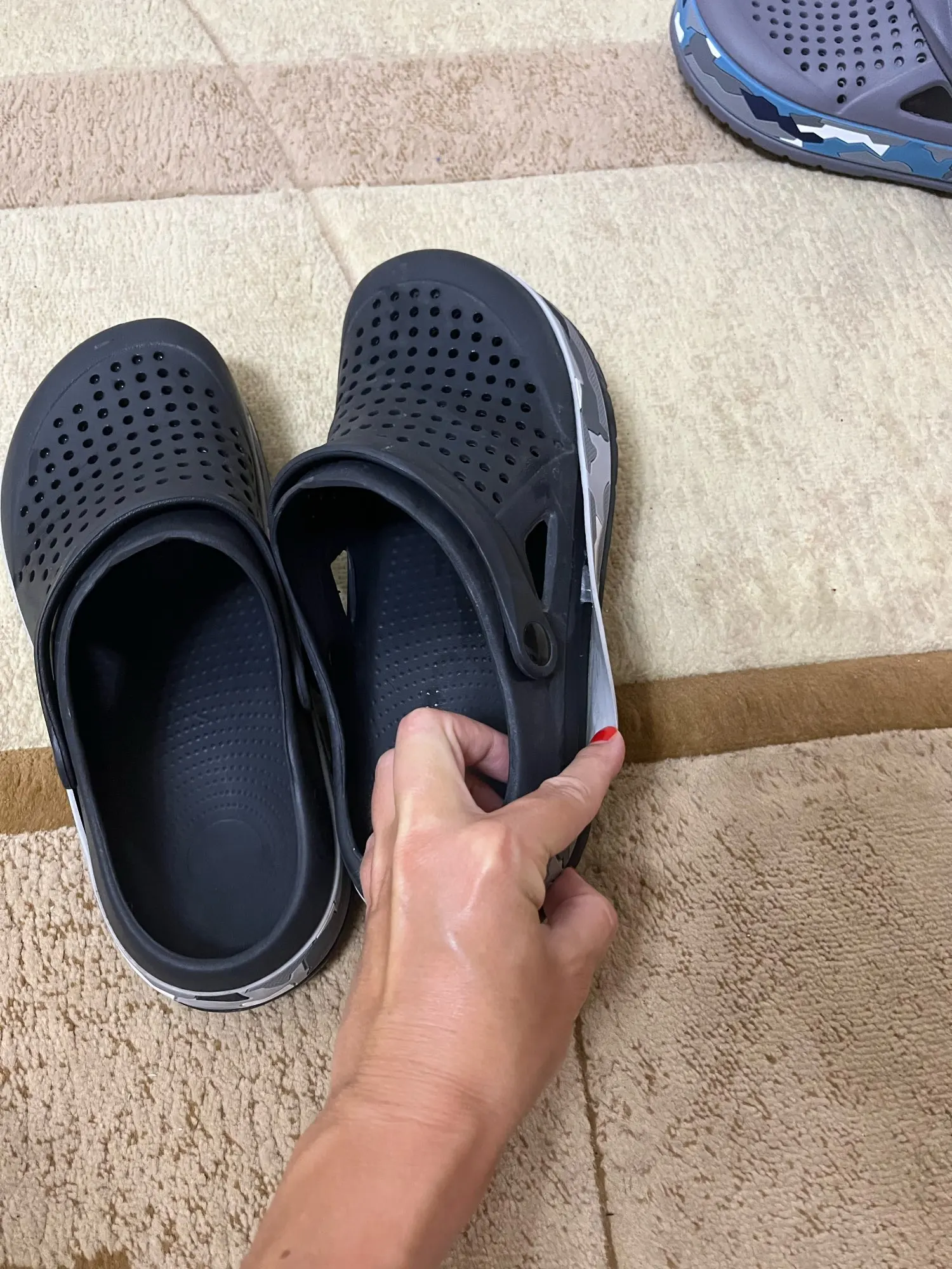 Кайфовые тапки, мягкие удобные, брал для работы( работаю веломехаником) по 12 часов на ногах, от мягкости кайфанул супер, рекомендую однозначно!! Поварам , сервисникам, офисникам. Размер определял по размеру ступни, на листик А4 ногу ставишь обводишь меряешь, получилось 27,5 см = 10 = взял 44, палец чутка упирается, но мне так и надо, больше по размеру будут болтаться плюс они из такого материала чуть утопчатся. До Новороссийска за 10 дней долетели. Наклейки отдельно заказывал)) теперь самый модный механик уровня SLX))))Sergei R. 4 февраля 2022