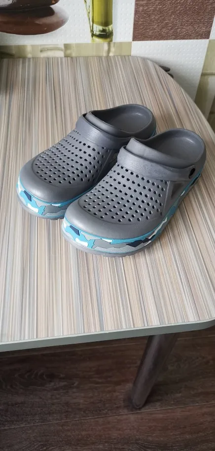 Сабо(Аля кроксы) хорошего качества, отлично держатся, материал приятный тактильно, носятся очень стойко, ношу на работе по 12 часов, ноги меньше устают чем от всего что было до них, Продавец быстро отправил товар18.11 в Москву в пункт выдачи прибыл 1.12