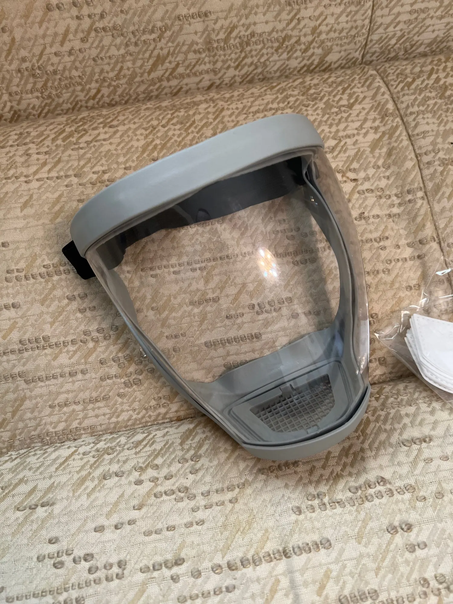 Защитная маска с 10-ма фильтрами Цвет -blackgray 10 фильтров Маска плотная, размер регулируется. Удобно дышать, хорошее качество. Идеально подходит для ремонта или при использовании химии или ядов.Защищает от пыли, бактерий,ядов. Фильтр меняется снизу. Доставка 10 дней в Украину.Пришло в надувной подушке. Рекомендую!
