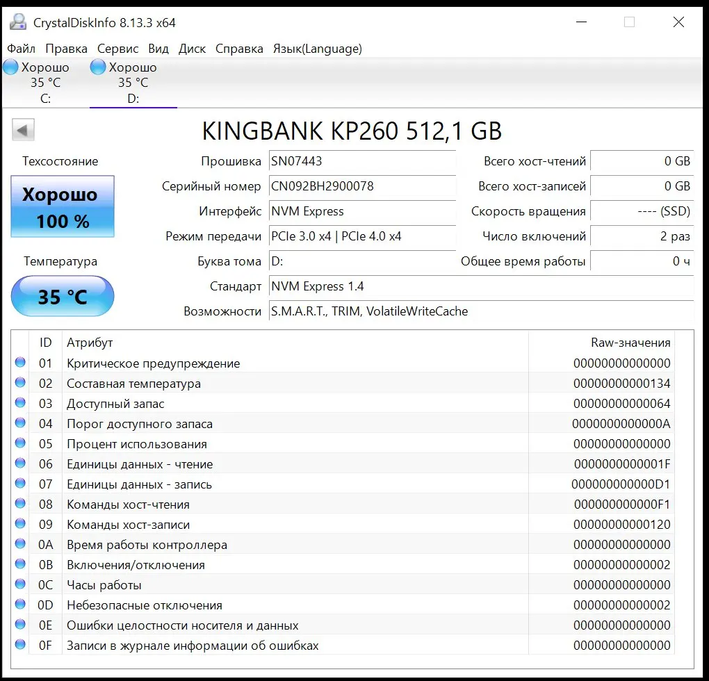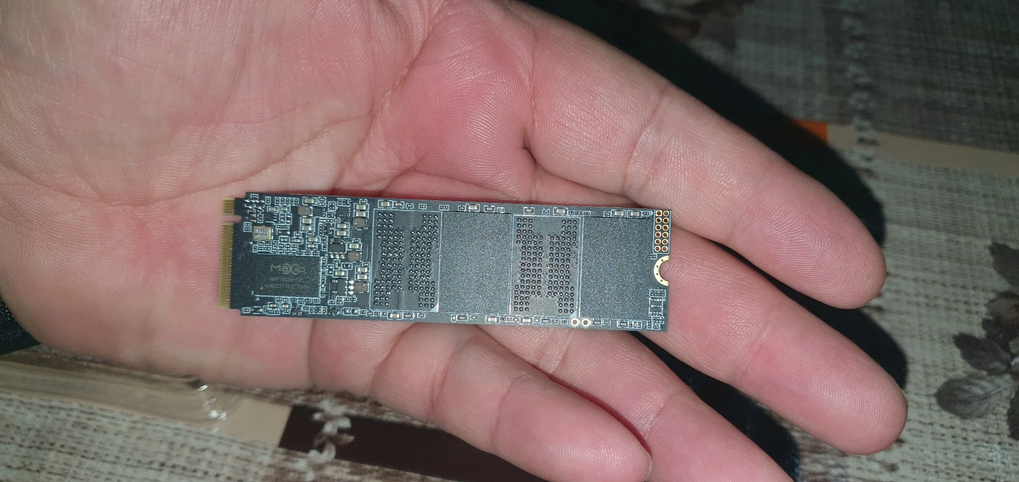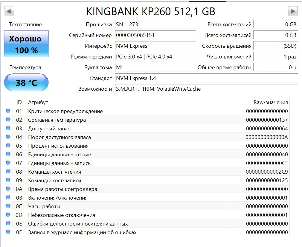 Прекрасно почти всё. Подробности на скриншотах, проверял на материнке с pci-e 3.0, потому скорости такие. контроллер Maxio map1602a, память 128-слойная TLC 3D-NAND. 2 термодатчика, один из которых честно показывает температуру контроллера. Греется до 70с, радиатора в комплекте нет.