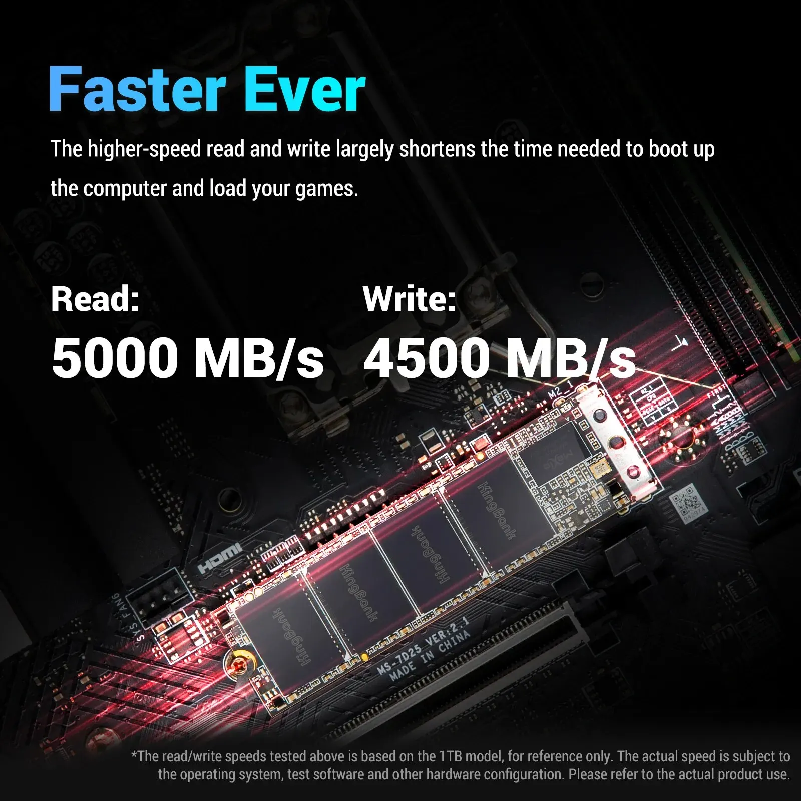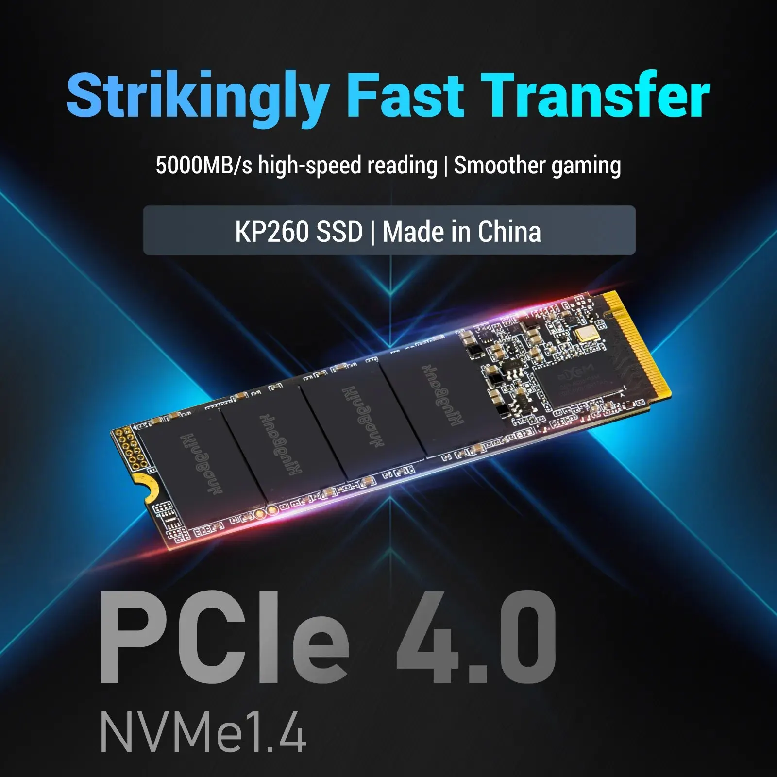 KingBank KP260 NVMe PCIe SSD использует новейшее 4-е Поколение контроллера PCIe с высокоскоростным считыванием до 5000 МБ/с, примерно в 2 раза быстрее, чем предыдущие твердотельные накопители PCIe 3,0, и примерно в 10 раз быстрее твердотельных накопителей SATA.