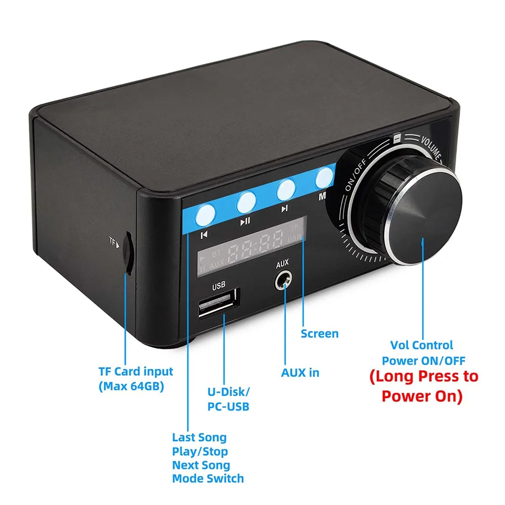 Мини-усилитель звука HiFi Bluetooth 5.0 класса мощности D Tpa3116 цифровой усилитель 50 Вт * 2 домашний аудио автомобильный морской USB/AUX вход