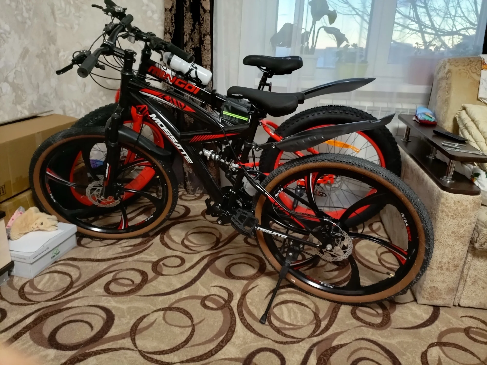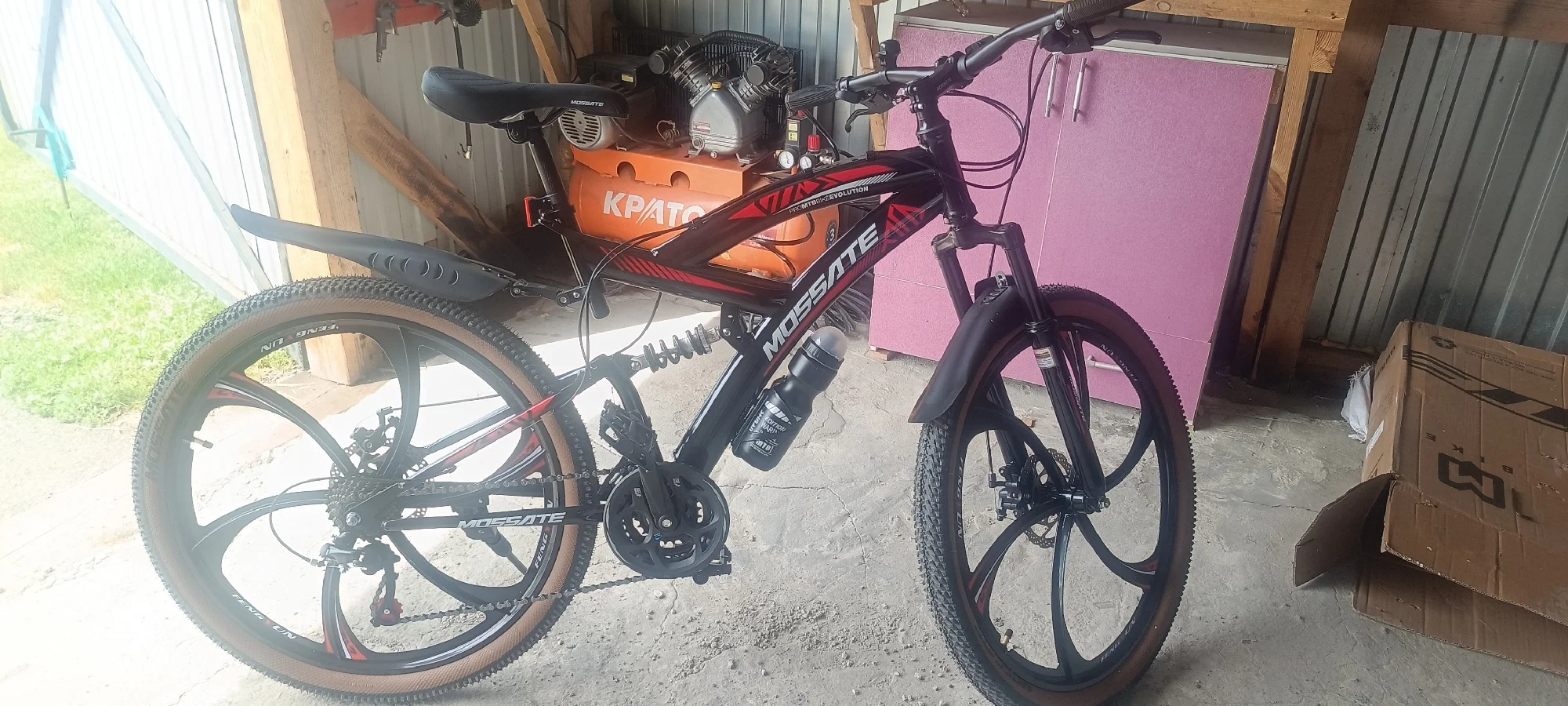Велосипед отличный. Собрал основную рабочую часть меньше чем за час и поехал проверять.Ездил пока только по дороге, полет нормальный. Нужно отрегулировать переключения передач и разницу между 6 и 7 скоростью я не почувствовал. Потом подкачал колеса и окончательно обвесил ништяками которых продавец положил нормально. Насос вроде пропускает чуток, но накачать все равно можно, у него есть железка чтоб упереть его ногой в землю и зажим для шланга. Прикольный фонарик, ночью проверю насколько хорошо светит. Он цельно пластиковый от чело легкий, батарейки в комплекте. 3 шестигранника и мульти-ключ для сбора и обслуживания велосипеда, но одном из шестиграннике на конце фигурная отвертка. Противоугонка прошла пытки. Крепление для бутылки держит плохо, думаю если налить туда жидкости, то на кочке слетит.