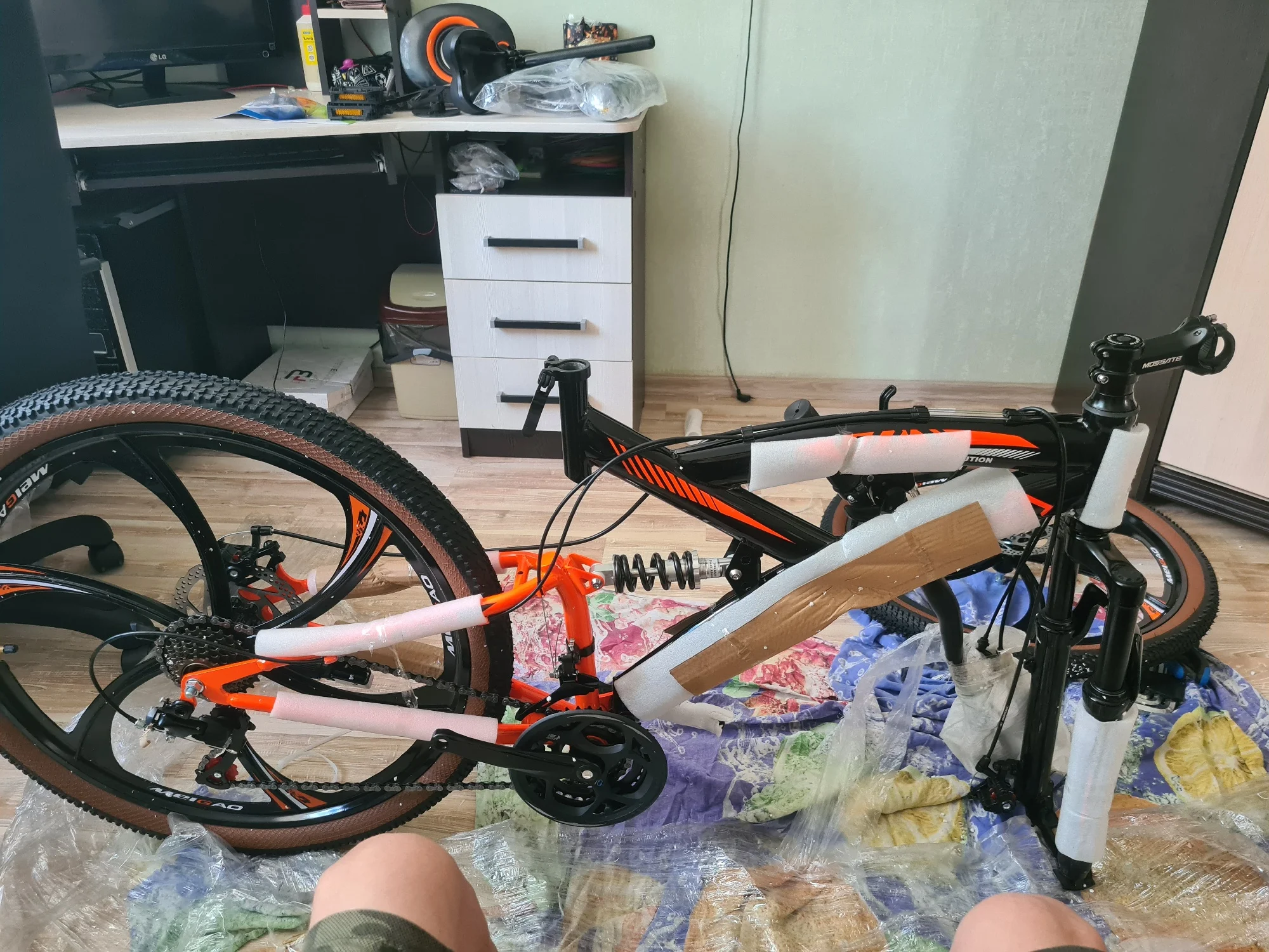 Первый покупатель )).Велосипед классный, соответствует описанию .В комплекте много разных велосипедных нештяков ))) На фото всё видно . Доставка маленько задержалась,но это из начально обговаривалось . Продавца советую к сотрудничеству . К велосипеду и продавцу претензий нету, всё четко .
