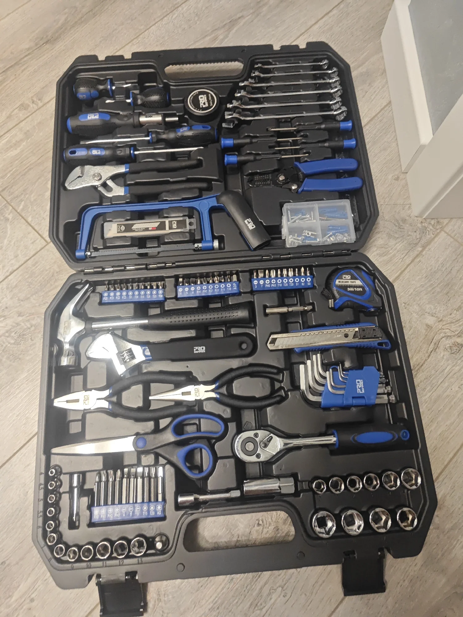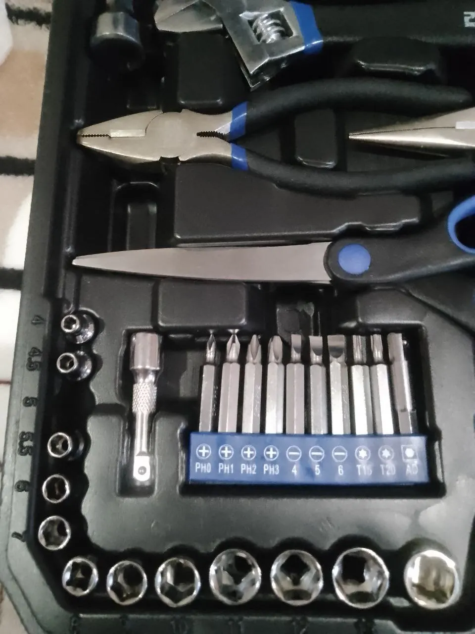 Набор хороший для дома и для мелкого ремонта вело, мото и авто техники. Для профессионального использования на СТО конечно не подойдёт, все инструменты не большого размера, мелковаты. Кейс на 4 балла из 5, некоторые инструменты не держатся в своих пазах. Качество инструментов на 4 из 5, есть пару тройку небольших косяков. Цена данному набору не более 5000 рублей. До поднятия доллара надо было брать, за ту цену товар был просто огонь. Покупал по акции и в данную цену уложился. В наборе не хватает двух мелких головок на 12 и 13 мм, и переходника со среднего квадрата на меньший. Брал два набора один себе, другой на подарок, в одном из наборов комплектация вся. В общем вроде всё, к покупке для дома, квартиры рекомендую, в нём в принципе есть всё необходимое.