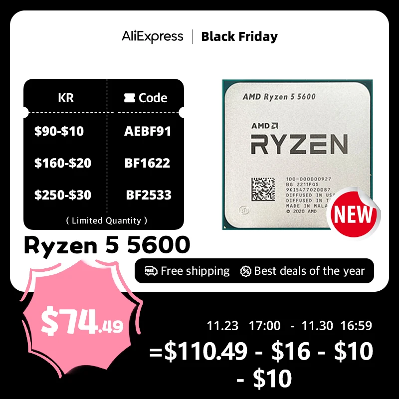 Процессор AMD Ryzen R5 5600 за 8640 руб со скидкой "больше=дешевле"