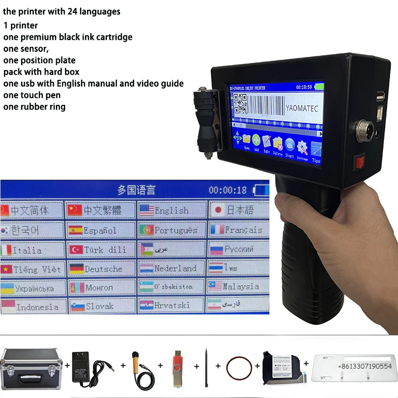 12,7 мм переменный QR-код партии, номер даты, логотип с датой, этикетка с датой срока годности, мобильный портативный ручной струйный ручной принтер, 24 языка, без зашифрованного принтера