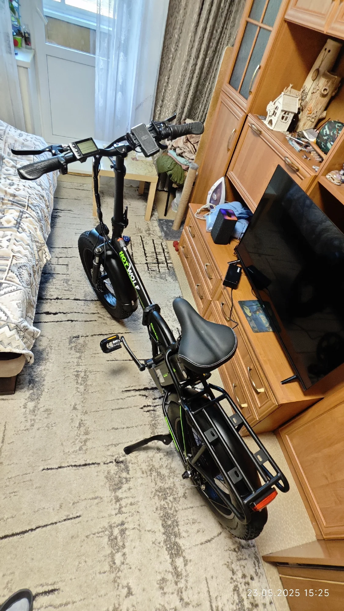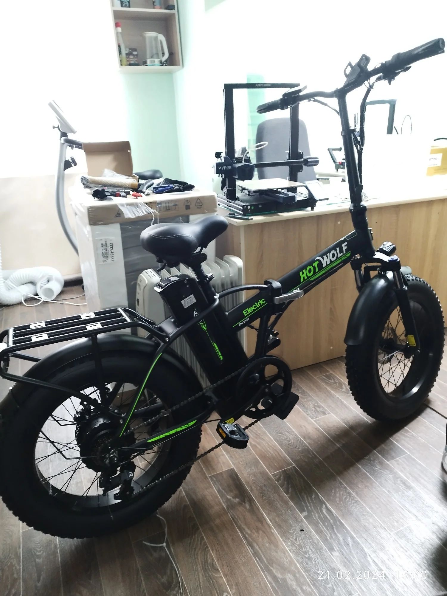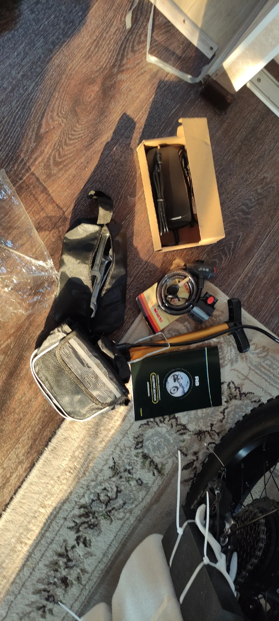 Велосипед отличный. Про упаковку всё сказано, но я повторю, отлично всё прибыло с московского склада компанией ПЭК. Скажу всем кто купил и будет покупать, герметизировать область контроллера нужно обязательно, на фото видно какие там отверстия. Сам контроллер герметичный, но провода некоторые постепенно зальет водой и грязью если ездить по бездорожью. Некоторые комментарии есть на фото. В дальнейшем планирую установить другой фонарь сзади и добавить стоп сигнал. Про настройки контроллера кому нужно и другие вопросы задавайте в разделе "Вопросы и ответы". Усилие пружины подседельнего штыря можно регулировать сняв сиденье. Фара спереди меня устраивает. Ограничил скорость в настройках до 25 км/ч так как торопиться некуда, а батарею высаживает быстрее, да и безопаснее ездить по тротуару. Думаю ёмкость батареи завышена, нет там 15 А/ч, 10 в лучшем случае, но это не точно. Если ездить не быстро и резко не ускоряться батареи хватит на 30-35 км.