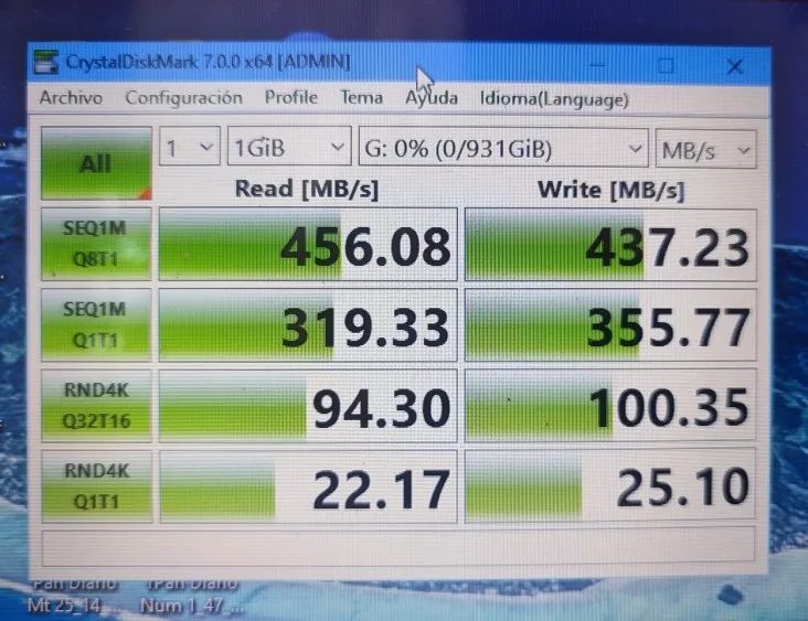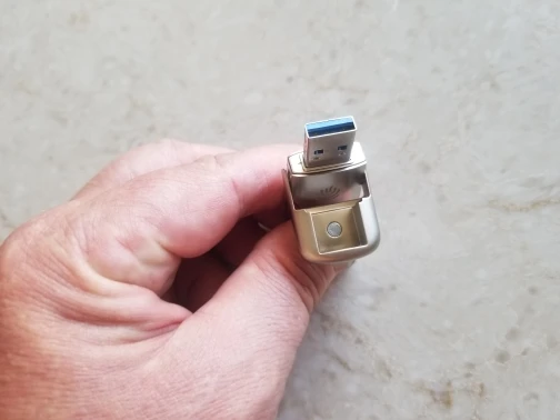 Пришло в комплекте, с красивым держателем для флешки. Выполните тест скорости с помощью кристаллизатора, 456 mb/s при чтении и 423 Mb/s при записи. Через окна в свойствах говорит 999 GB. Эти тесты проводятся, когда Флешка активирована с помощью отпечатка пальца или пароля. Когда он зашифрован, он дает другие данные, я полагаю, это из-за шифрования. Флешка сильно нагревается во время теста скорости. Будучи цинком, материал немного тяжелый. Легкий дизайн был бы лучше. Но материал, я полагаю, делает его жестким.