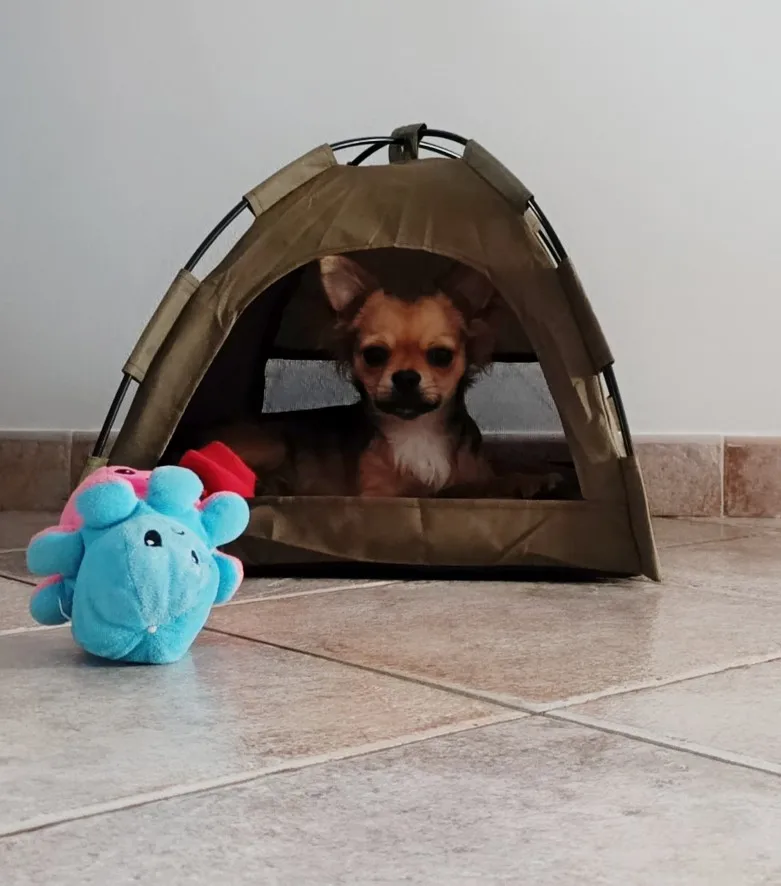 Быстрая доставка, материал очень хороший, размер идеально подходит для чихуахуа. Установить его не очень просто, но в конце концов результат отличный, и вы забываете о приложенных усилиях. Я купил его, когда я беру его на море, чтобы защитить себя от солнца. Моя собака любит ее, мы ему очень нравятся☺️