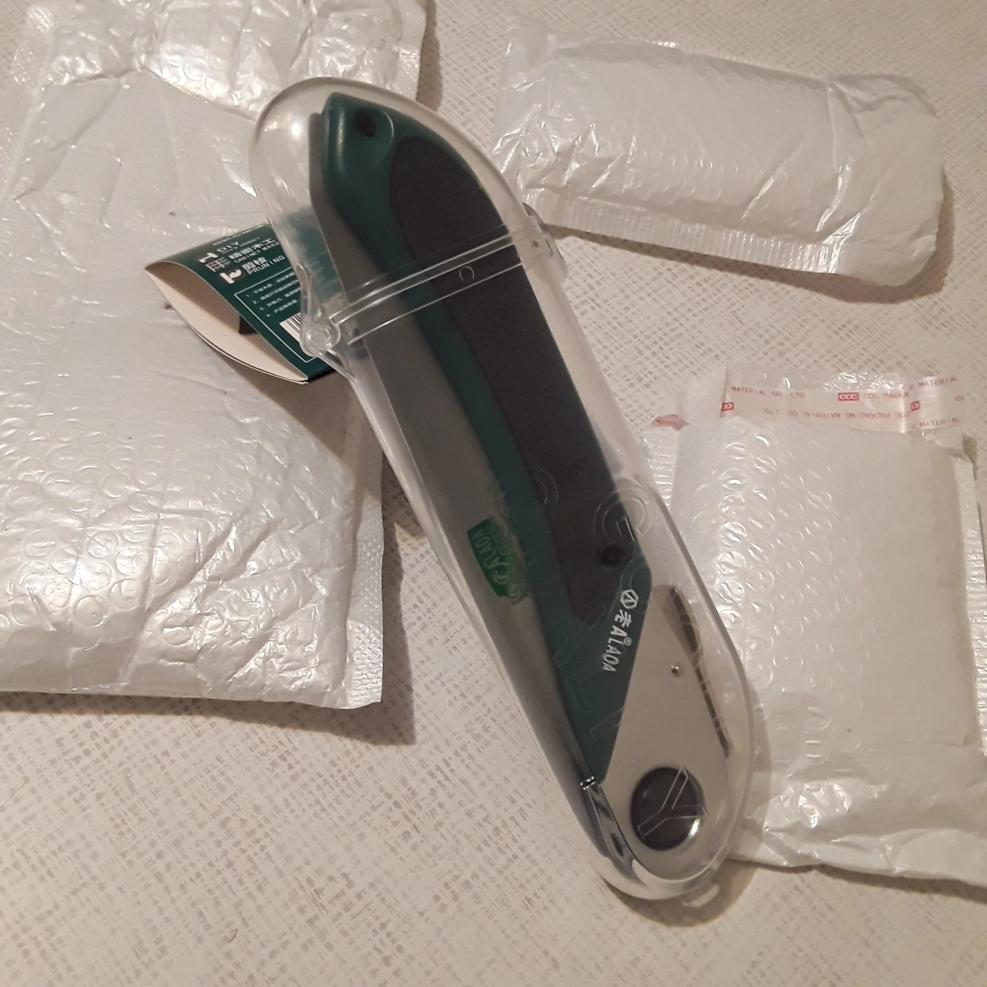 Заказ пришел в Краснодарский край за 2 недели. Ножовку этой фирмы заказываю уже второй раз. Первую с двумя большими лезвиями заказывала давно у другого продавца. Очень понравилась. Пользуюсь ею до сих пор. Решила теперь заказать с лезвием покороче, чтобы полегче носить в кармане. Ножовка опять отличная, по качеству такая же, лезвие опять ооочень острое, параметры соответствуют описанию на сайте продавца. Работать ею надо только в перчатках. Продавец молодец, честный, отправил сразу, к упаковке отнесся добросовестно. Упаковка шикарная: пластиковый чехол, полиэтиленовый кулек и еще два кулька пупырчатых. Такое качество упаковки встречаю впервые. Продавца и его ножовку рекомендую. Заказывайте смело, не пожалеете, т.к. эта ножовка Вас не разочарует и всегда будет радовать в работе.Ellada D. 5 января 2023