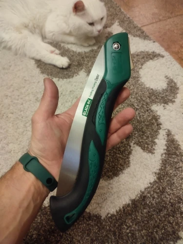 пила понравилась,и по качеству полотна и вообще как сделана,есть дороже и гораздо хуже,заточка отличная.что интересно режущая часть ровная как на обычной ножовка,а значит ей легче пилить доски по прямой,просто рукоятка рассчитана для пиления на себя но можно приноровится, всё это делает её универсальной.