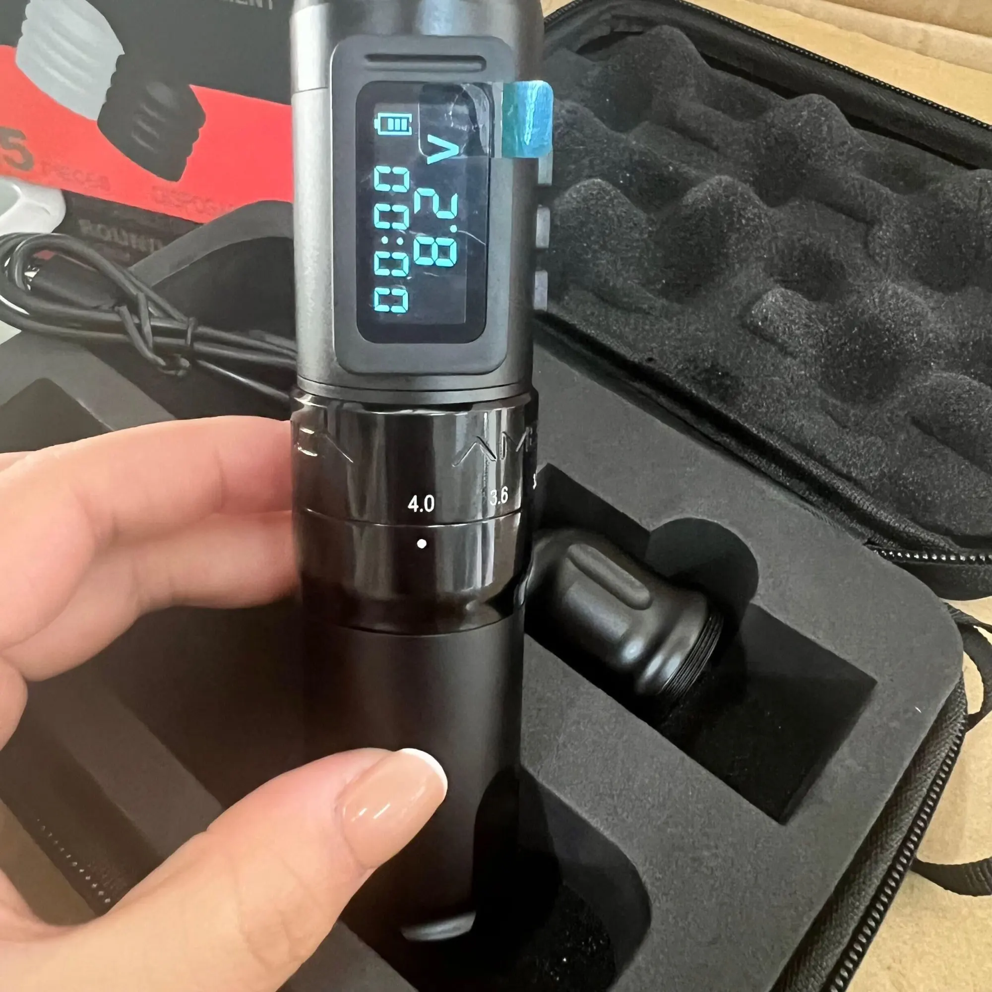 Источник питания для татуировки: светодиодный дисплей покажет оставшуюся мощность, а полная мощность отобразит 4 деления.Быстрая зарядка с помощью соответствующего зарядного кабеля обычно может быть полностью заряжена примерно за 2 часа.