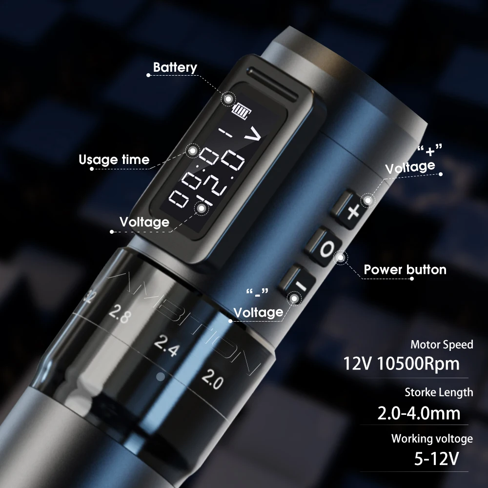 Ambition MARS-U Professional Wireless Tattoo Machine Pen Adjustable Stroke...