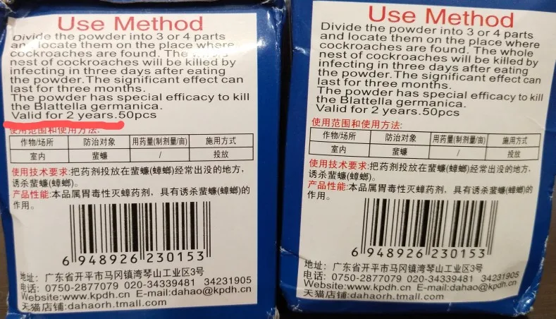 Как использовать:Разделите 1 пакет на 3 или 4 части и поместите его там, где обнаружены тараканы. Инфекция может убить всех тараканов в течение трех дней после еды порошка. Замечательный эффект может длиться три месяца.