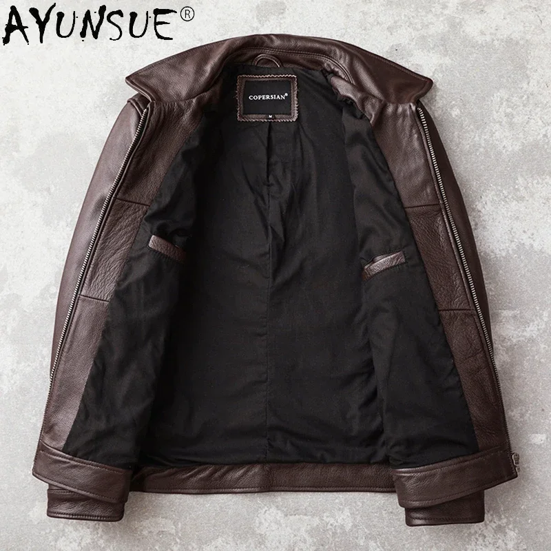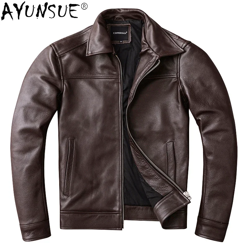 AYUNSUE мужские Куртки из натуральной воловьей кожи, Мужская одежда, осеннее пальто, Мужская одежда, кожаная куртка для мужчин