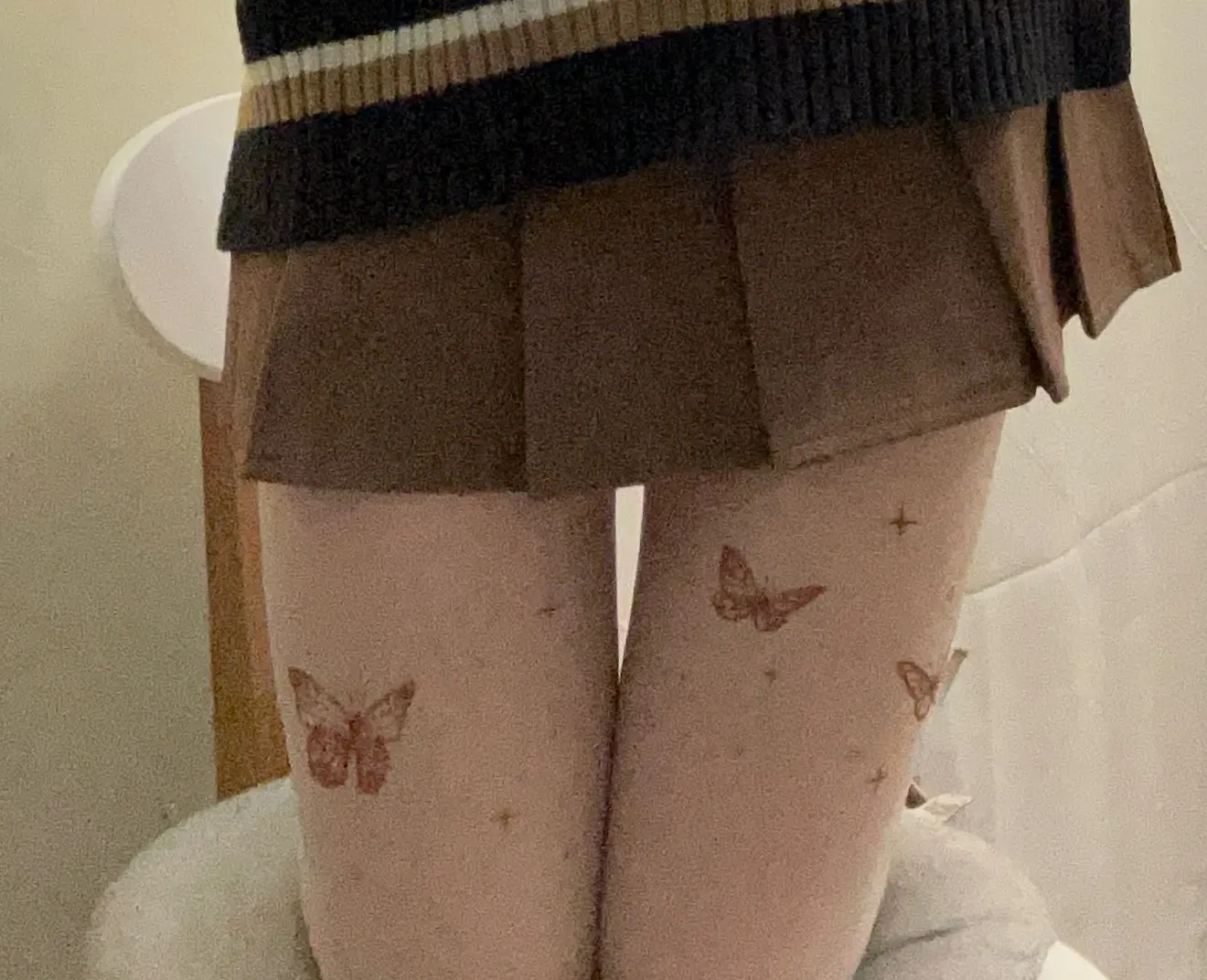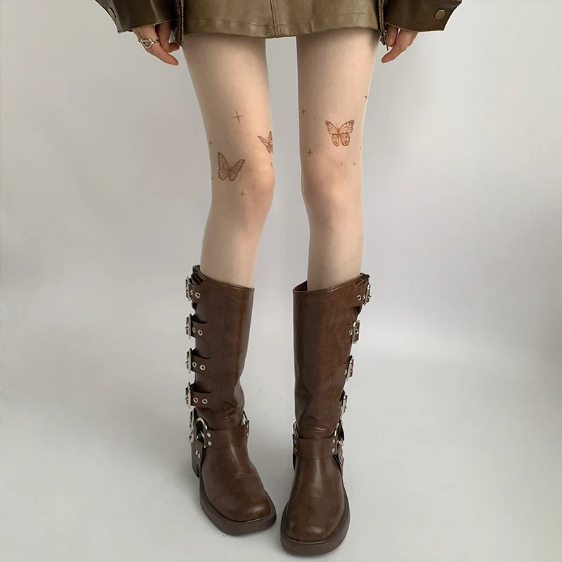 Колготки JK Lolita для девочек, Колготки с татуировкой бабочки Y2k, чулки до бедра для девочек, колготки, нижнее белье, сексуальные женские колготки, колготки