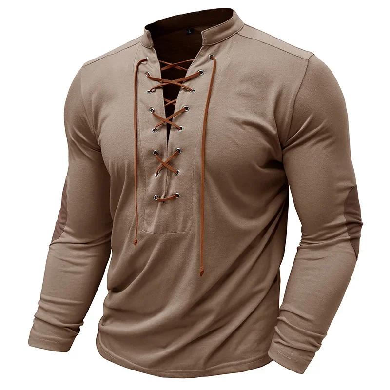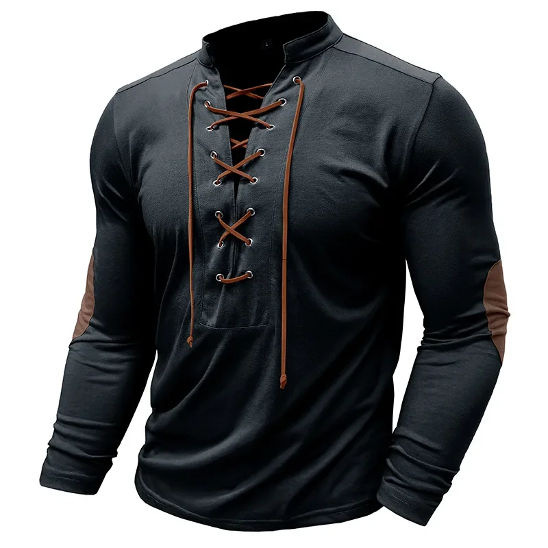 Свитшот в стиле ретро с завязками мужская одежда в стиле пэчворк Модный пуловер с длинным рукавом и V-образным вырезом уличная одежда мужские повседневные топы