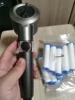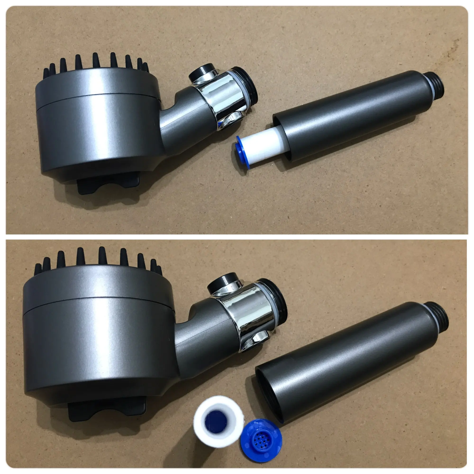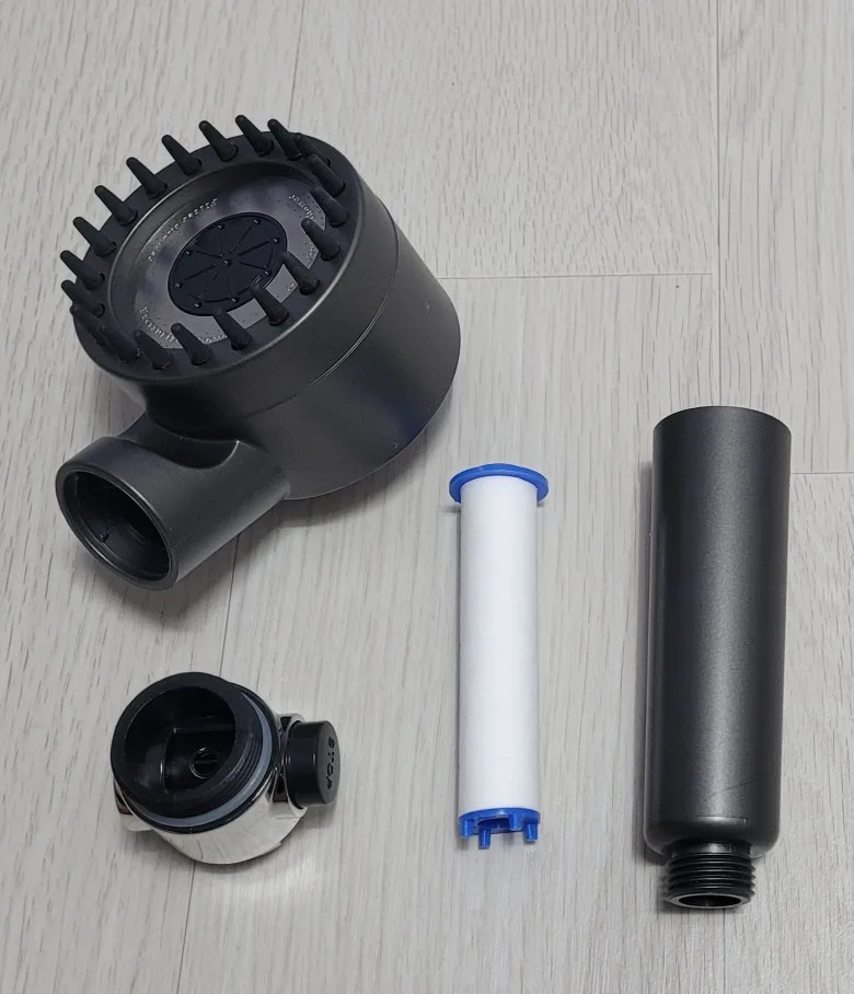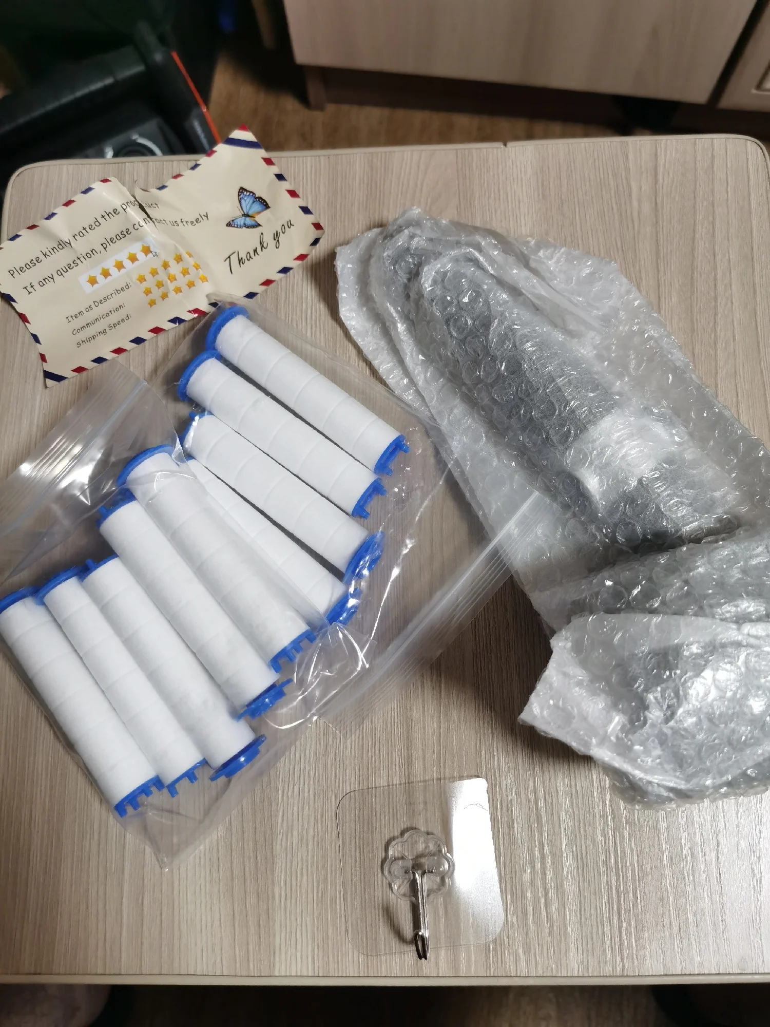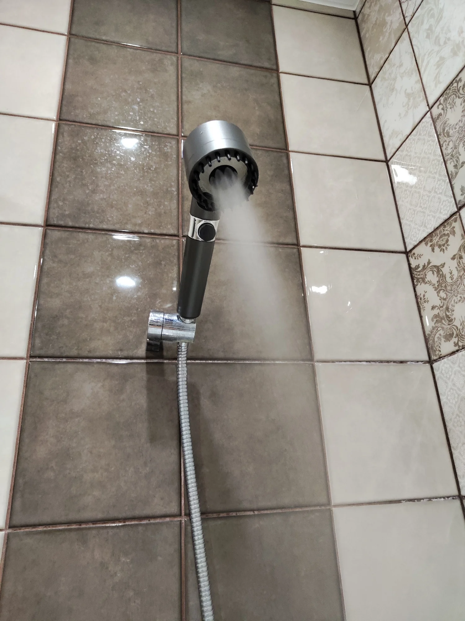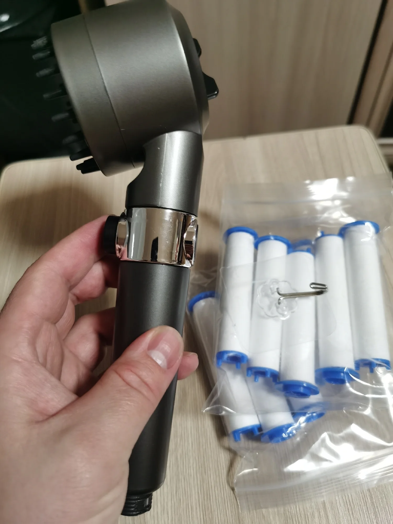 В самому крані є 1 фільтр, + додала до замовлення 5 додаткових. Роз’єм Стандартний тому підійшов під стандартний душ. Зміну сів — має всього 2 режими. 1 розподіляє дуже дуже мілко, 2-й крупніше (на фото) але хотілось би ще 3-й режим на ще крупніше, бо вода летить у всі боки. Має двосторонню кнопку з 1 боку включити з іншого виключити. Прикольні резинові кінчики для масажу.