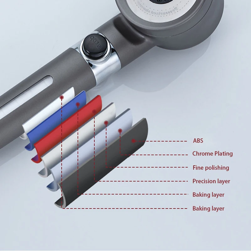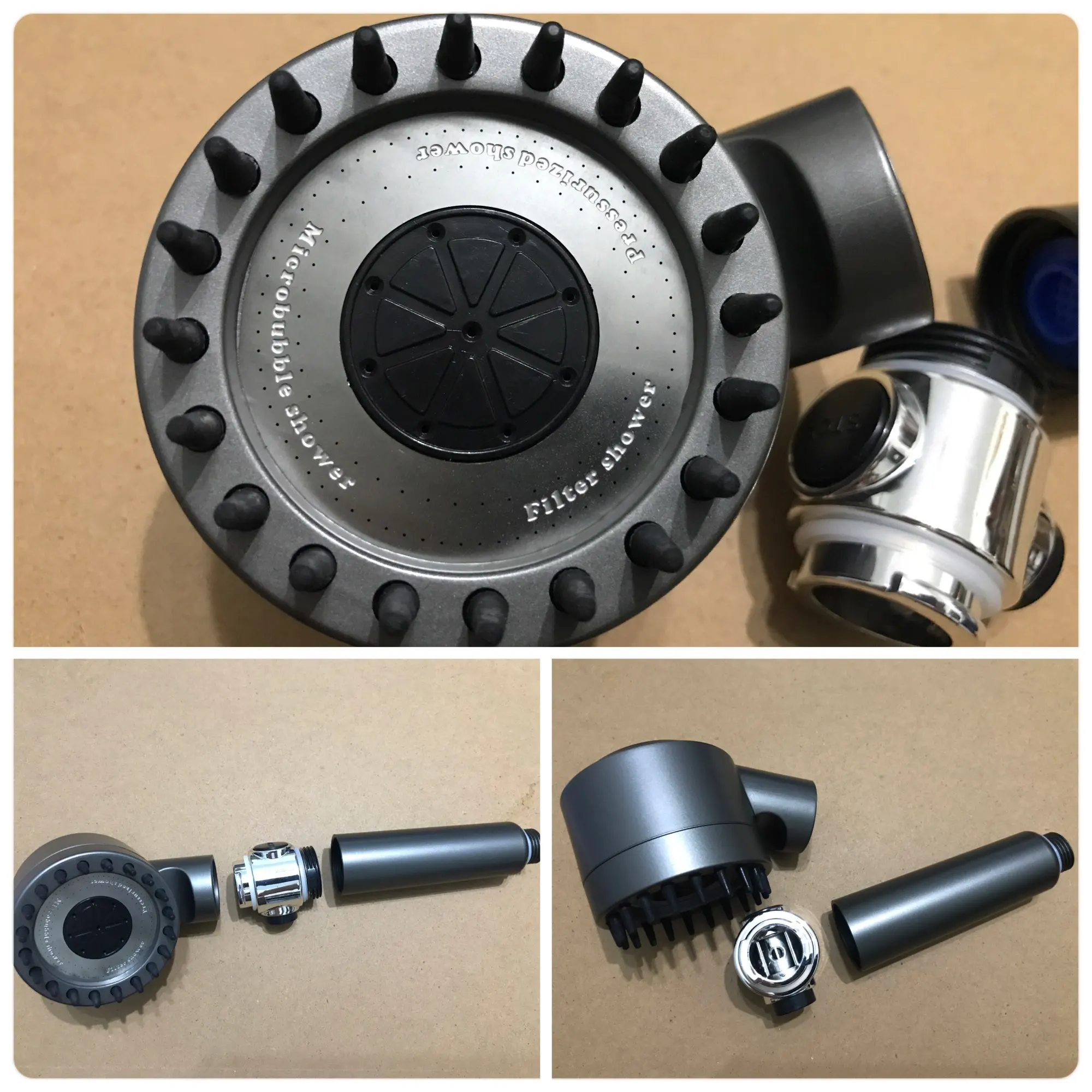 Душевая лейка с массажной щеткой, сменными фильтрами и кнопкой, останавливающей поток воды