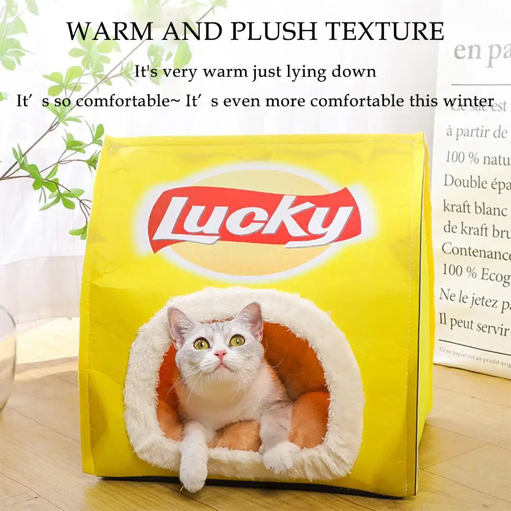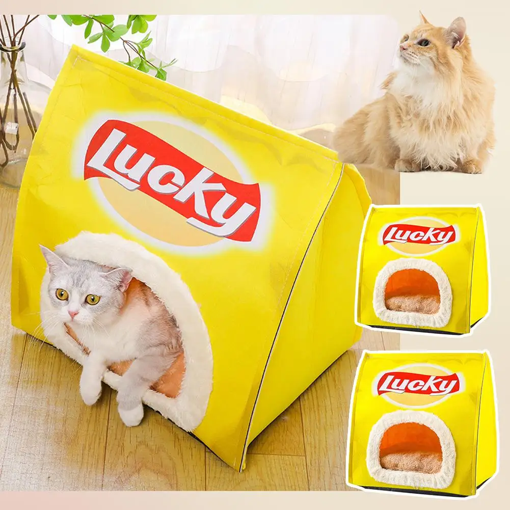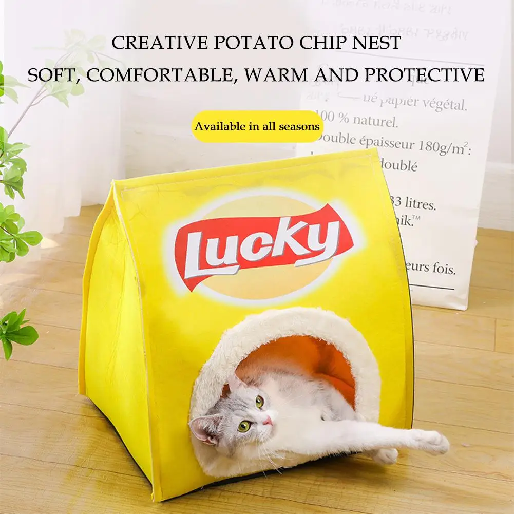 Кроватка для кошек с картофельными чипсами для маленьких и средних питомцев, милая кровать для кошек, сохраняющая тепло и сверхмягкая креативная Лежанка для домашних животных, домик для кошек для домашних кошек