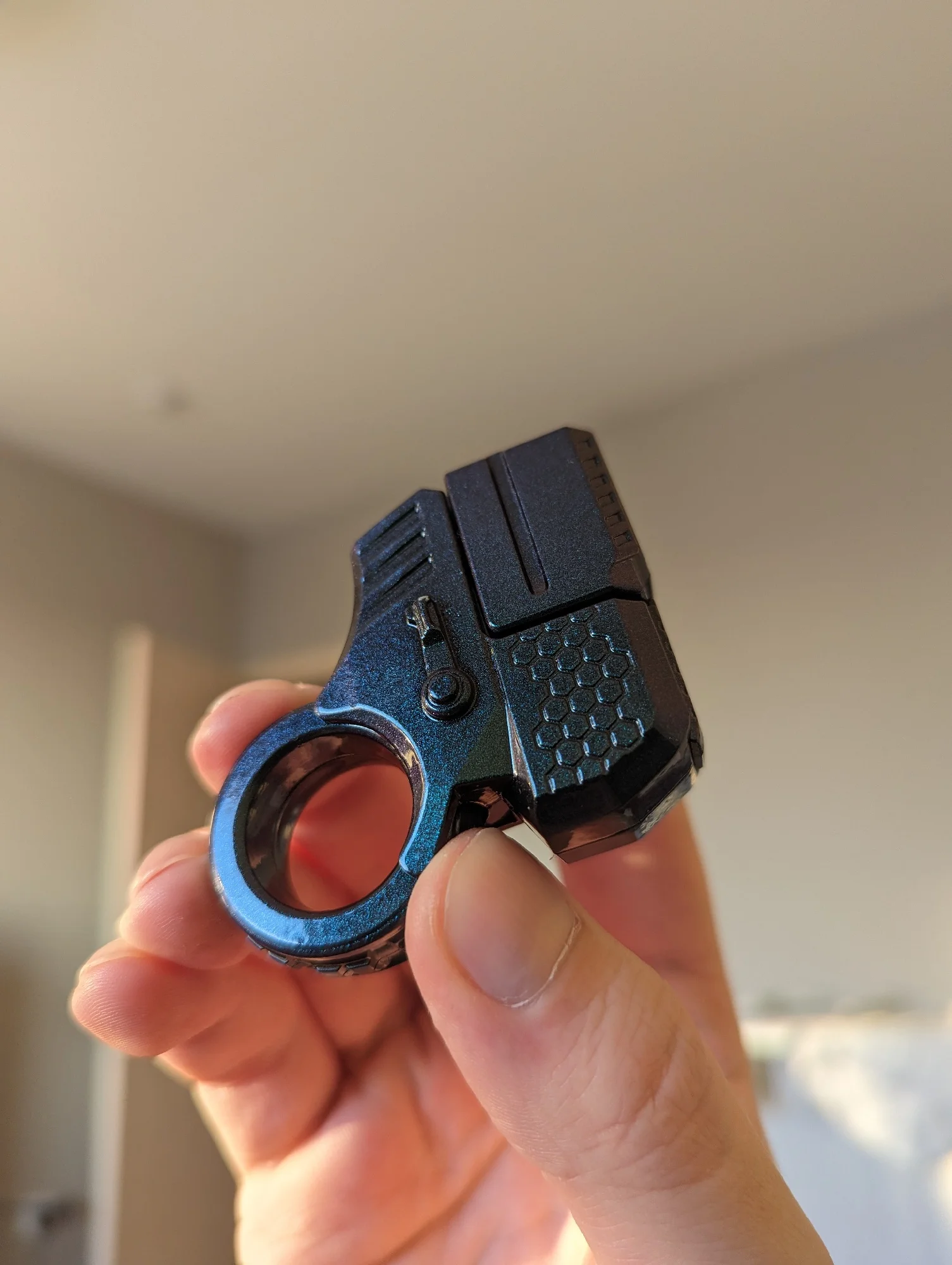 Не прокручивается на пальце, довольно грубо сделан. Мне не понравился.
