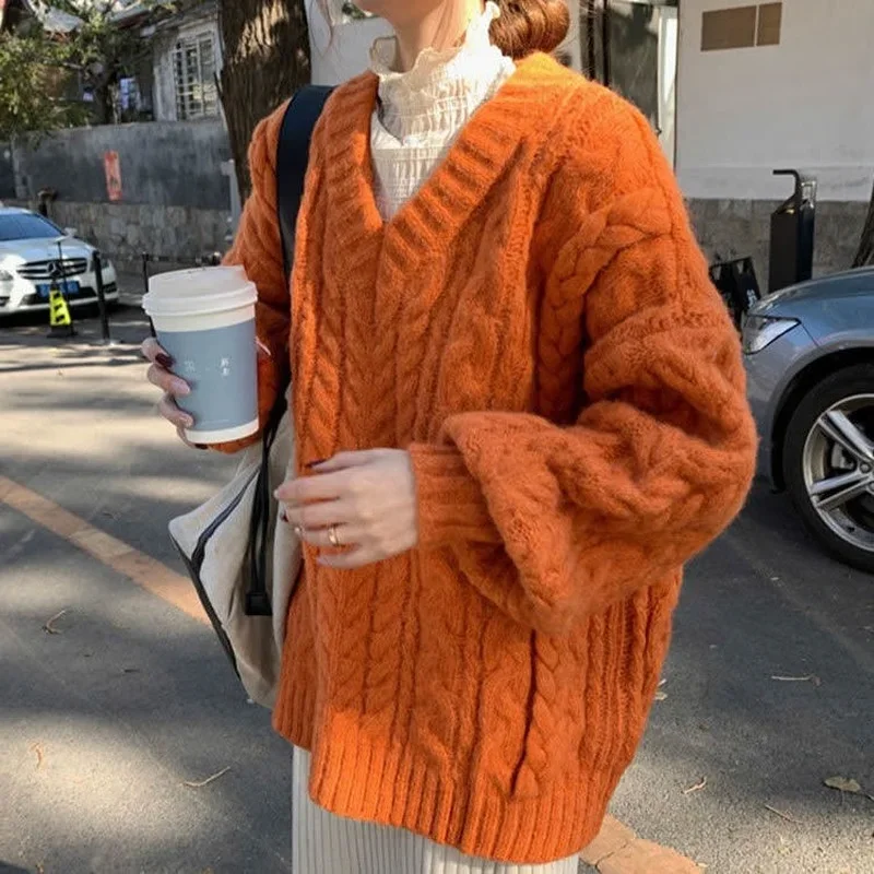 - Женский вязаный пуловер с V-образным вырезом
