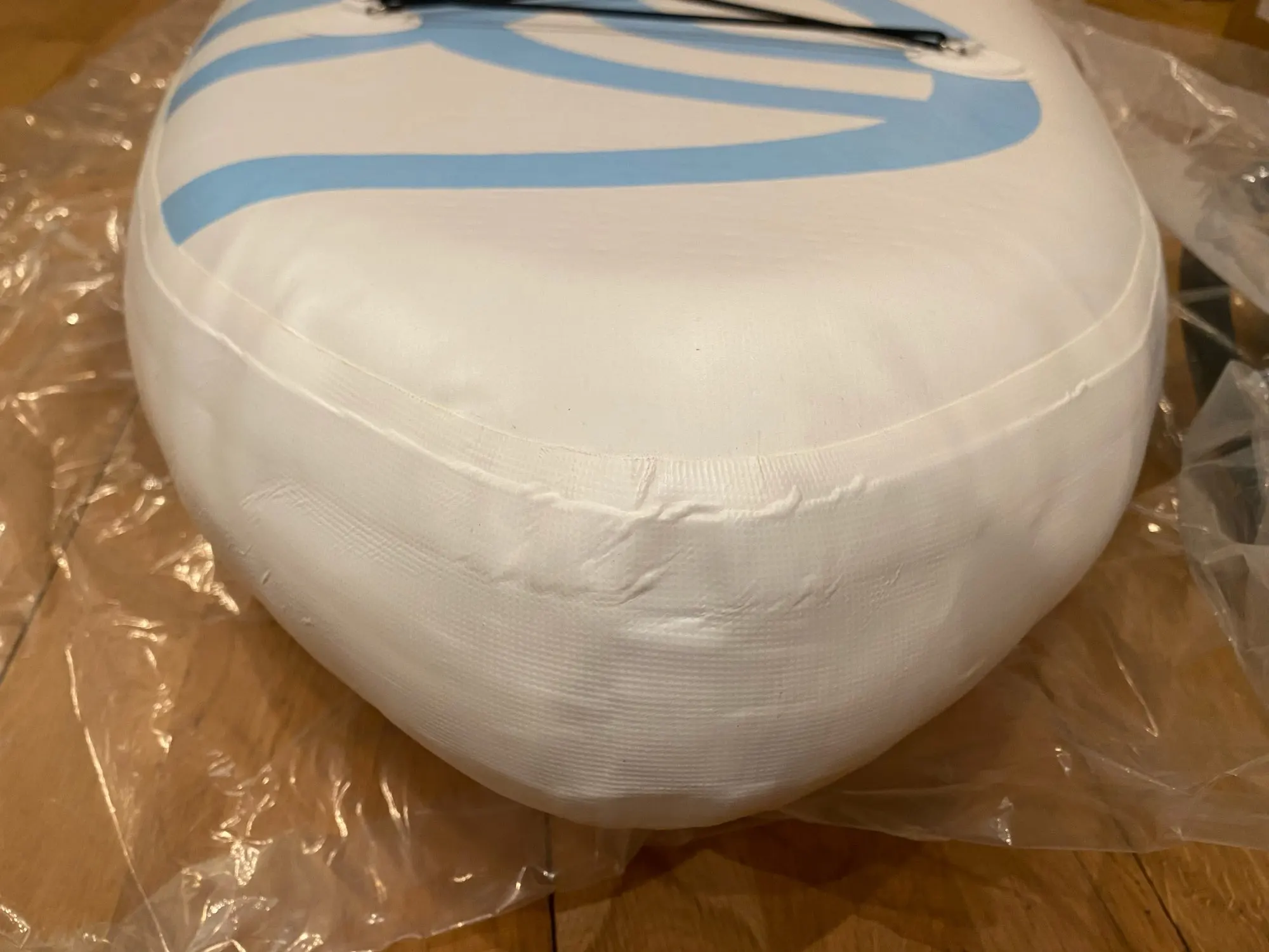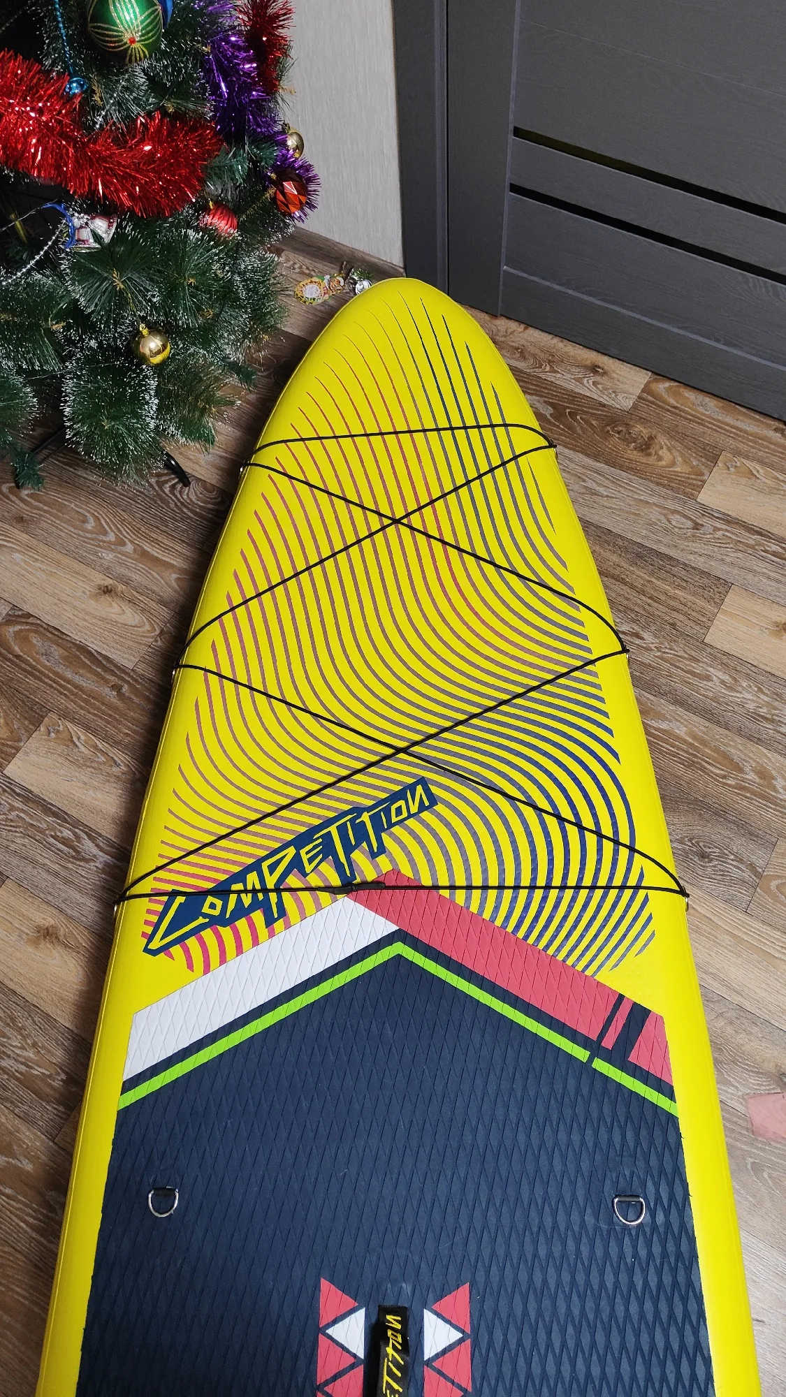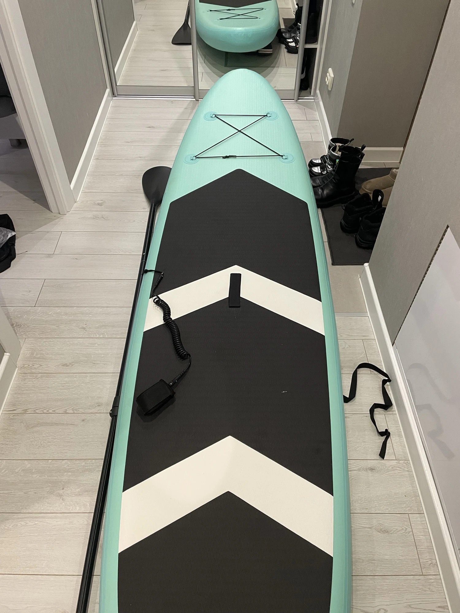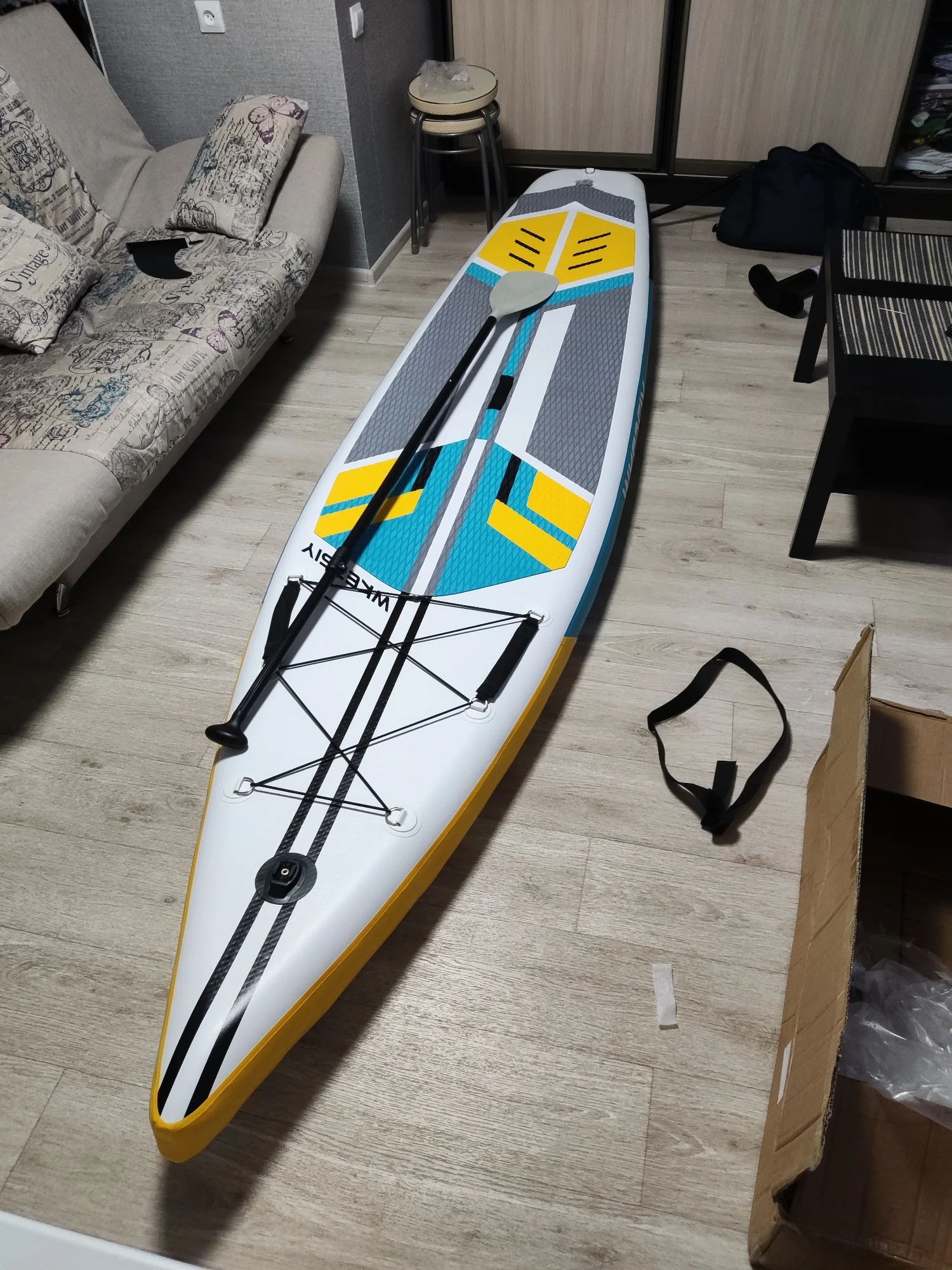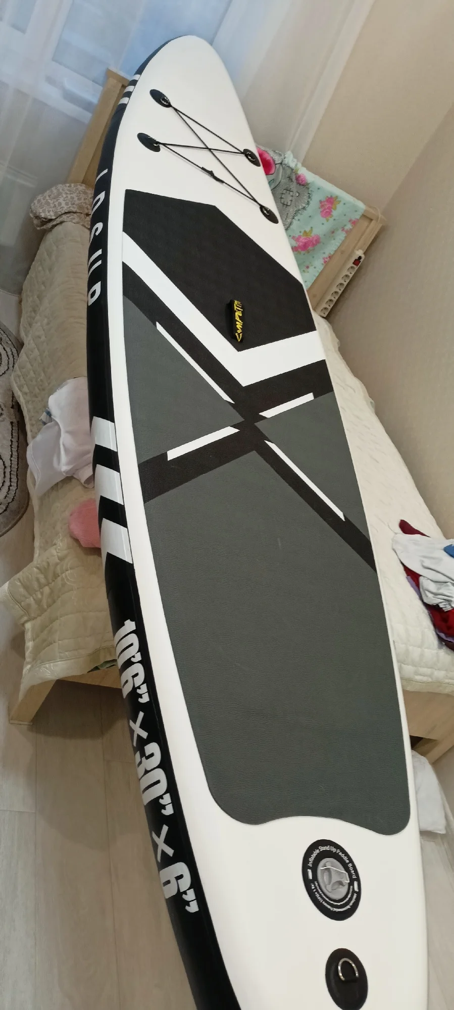 В общем и целом не плохое приобретение, за вменяемые деньги. Из минусов: 1. с одной стороны отошел угол верхнего слоя (по спору вернула стоимость на рем.комплект) 2. Не работает датчик давления на насосе, поэтому пробное накачивание производилось ‘на глаз’. Накачивание заняло не более 5 минут, надутый сап пролежал 2е суток, брешей не замечено. Доску брали для спокойного катания одного взрослого с ребенком, думаю отлично подойдет для этих целей, сезон покажет