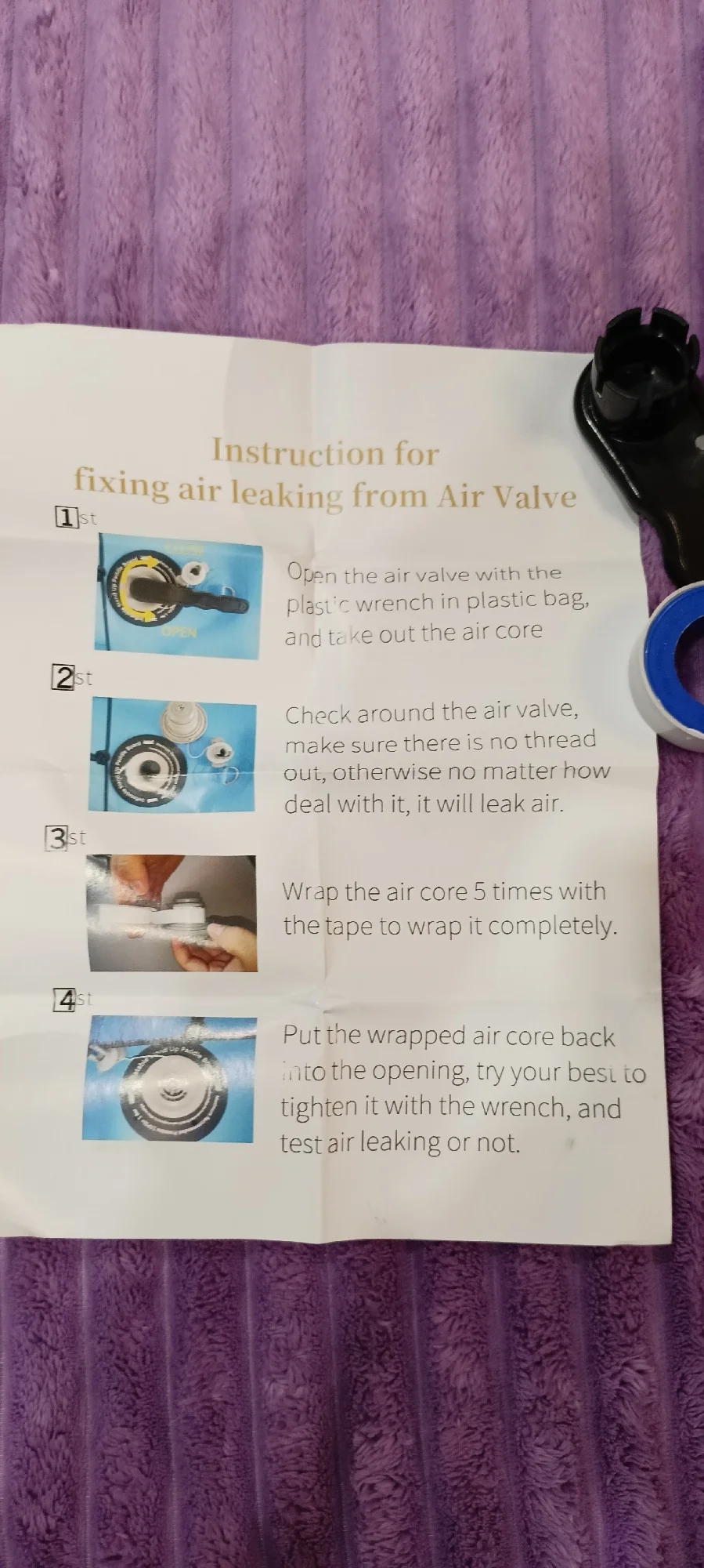Доставили за 2 недели из России. Коробка целая . Замотана черной пленкой, так не видно , что упаковано. Другой сап пришел в родной коробке, где надписи и рисунки определяли товар. Накачал до 12 psi. Когда отсоединил шланг насоса, клапан не закрылся , а со свистом стравливал воздух, пока не нажал на него пару раз пальцем. Давление упало . Надо как то регулировать клапан. Вложена инструкция с ключом и фум лентой, как регулировать клапан.