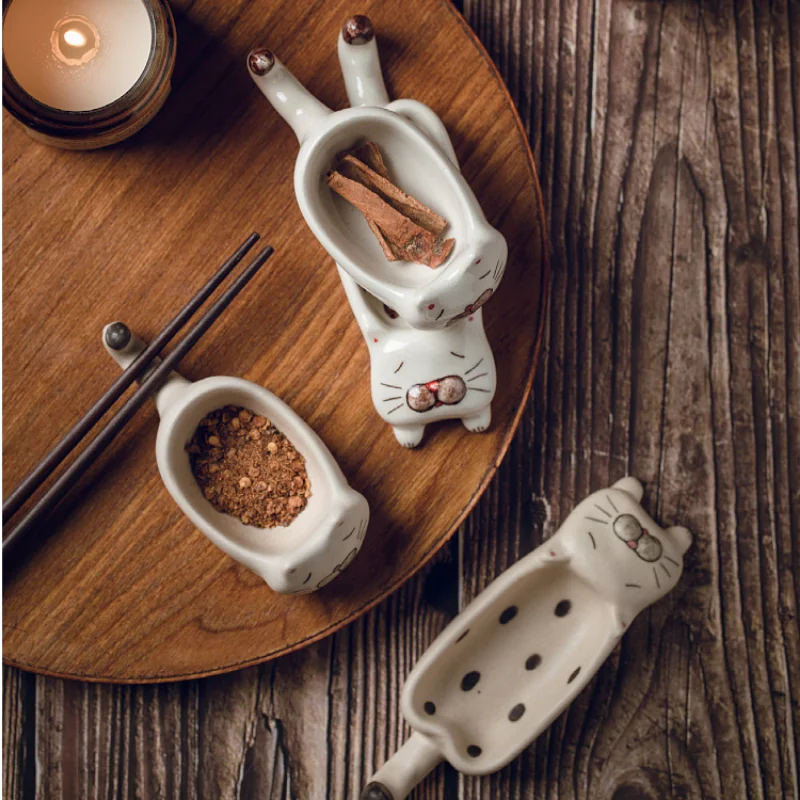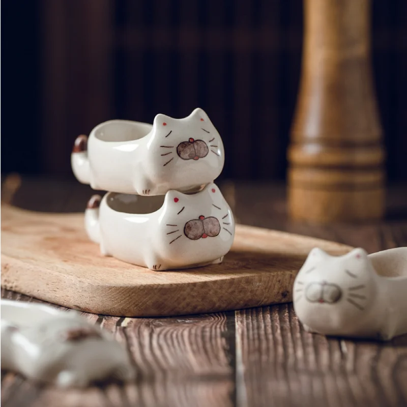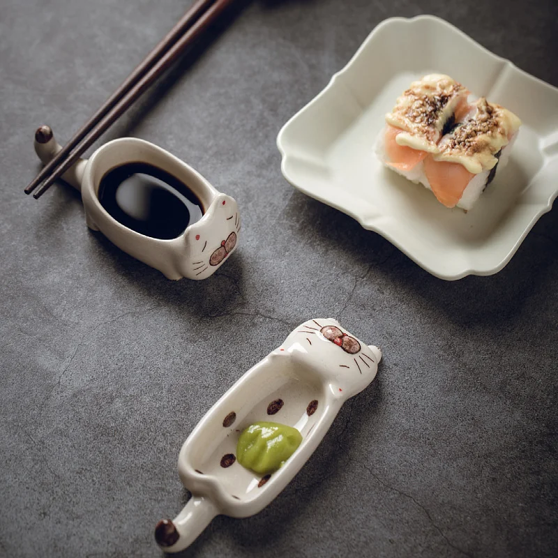 Керамическая тарелка для приправ, японская творческая глиняная тарелка ручной работы, тарелка для соуса в форме кошки, тарелка для соевого соуса, многофункциональная тарелка для горчицы
