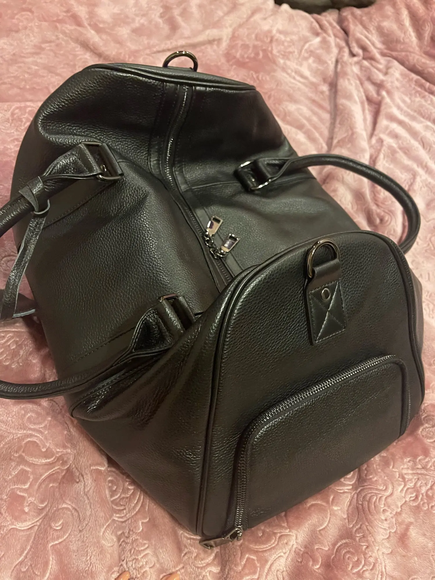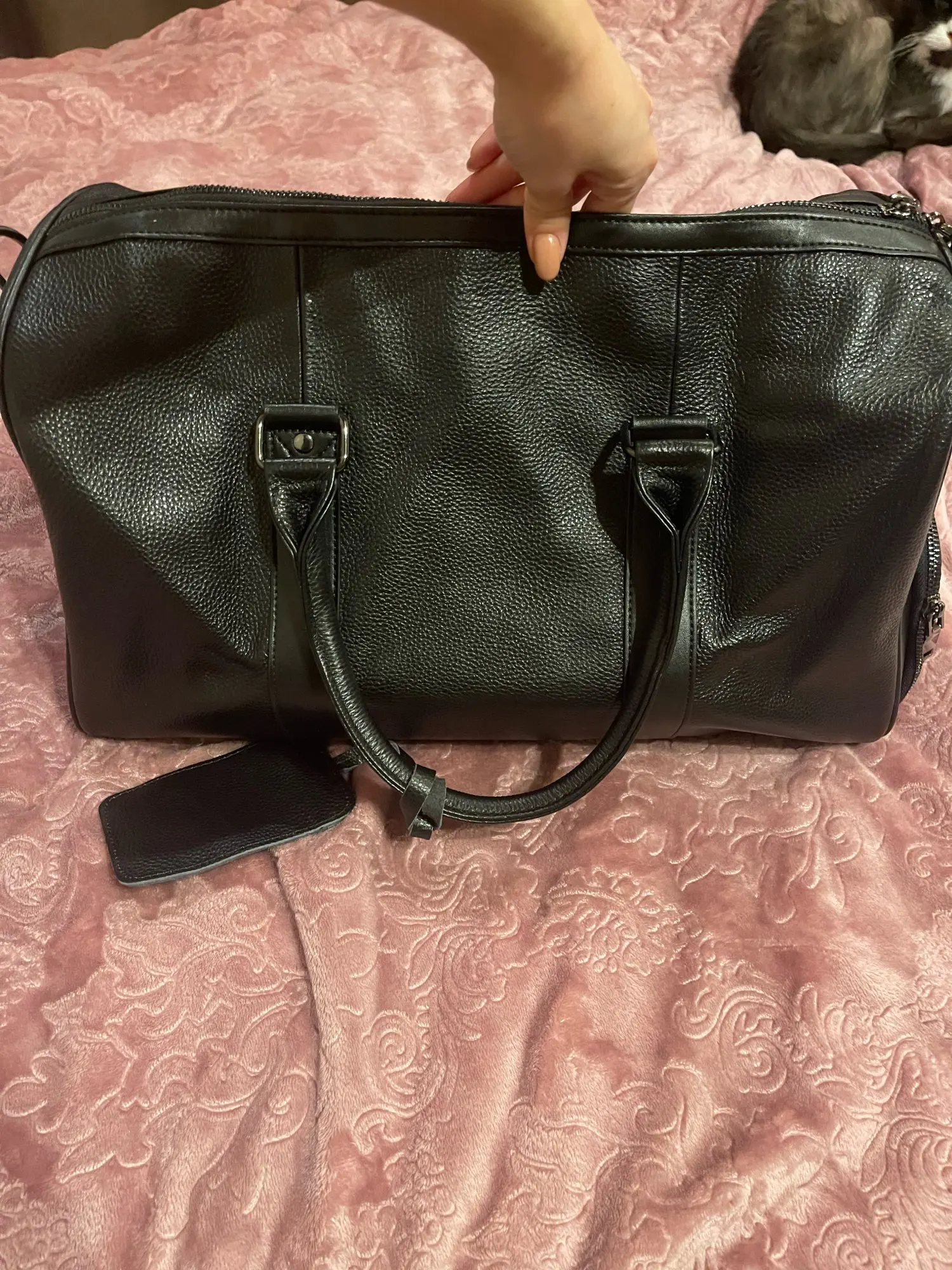 Сумка отличного качества, размер самое то для ручной клади в перелетах, кожа настоящая, толстая. Не выглядит дешевой, такое + - видел в магазинах по 300-400$. Приехала в Казахстан курьером до адреса за 2 недели не смотря на Китайский новый год