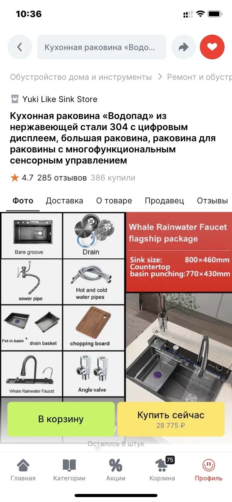 курер доставил коробка целая без вмятин хотел установить: слив (выпуск для мойки) был упакован в тетро упаковке бракованый пластик пережёный что способствовало его расколу или упаковщик намерено упоковал сломаную деталь; при установке питьевого крана обнаружилось отверстие больше чем сам кран а для его центровки хоть бы положили шайбу хотя бы резиновую , также и с песпособлением для мойки стоканов ; мойка была заказана с цыфровым дисплеем наверное дисплей и цыфры придут познее????!!!!!!2424 u. 24 июля 2024