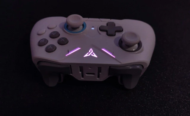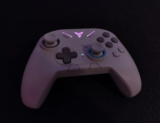 хороший геймпад. интенсивная подсветка и насыщенные цвета, хороший софт, есть макросы и бинды, доступны 4 конфигурации (можно переключаться с помощью одновременного нажатия на + и -), хорошая вибрация, очень удобные лепестки снизу, скриншот 2 (они дублируют крестовину) и дополнительные кнопки с и z (они же дублируют нажатие на стики) окружность приличная для такой цены, очень приличная(скриншот 4), нет привязки к осям это замечательно. единственный минус это центрирование правого стика, на скриншоте 5 видно, но это терпимо.