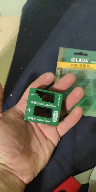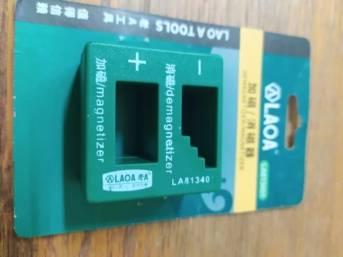 Хорошая вещь, помогает размагничивать и намагничивать отвертки, намагничивает отвертки с магнитным покрытием на конце насадки, слабо работает если намагнитить просто металл без магнитного покрытия